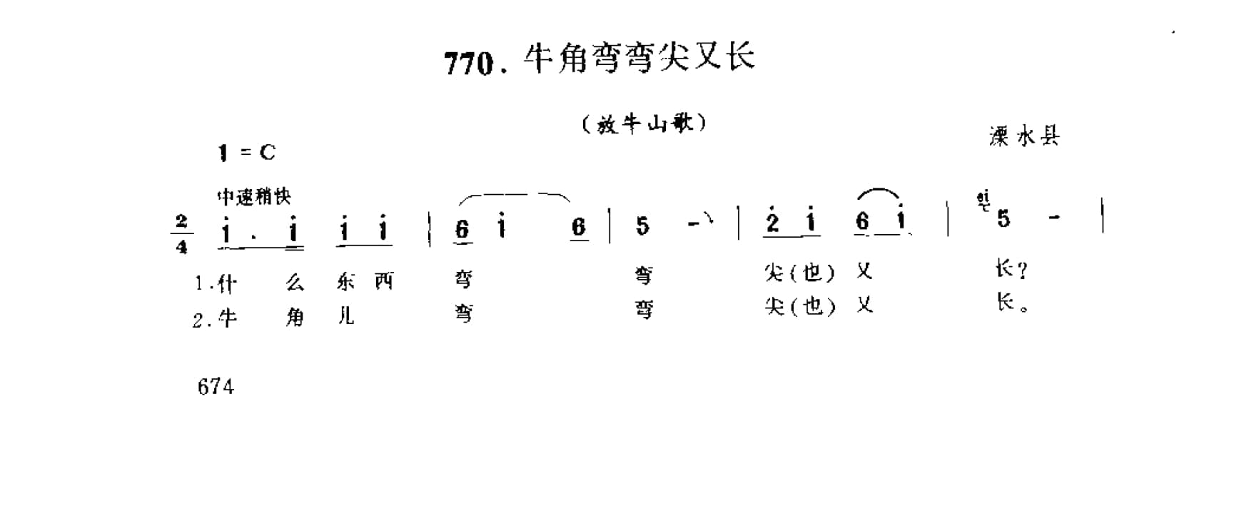 名称:山歌_牛角弯弯尖又长 放牛山歌 溧水县国家:中国分类:歌谱子类:民歌谱类型:简谱/五线谱文件格式:jpg