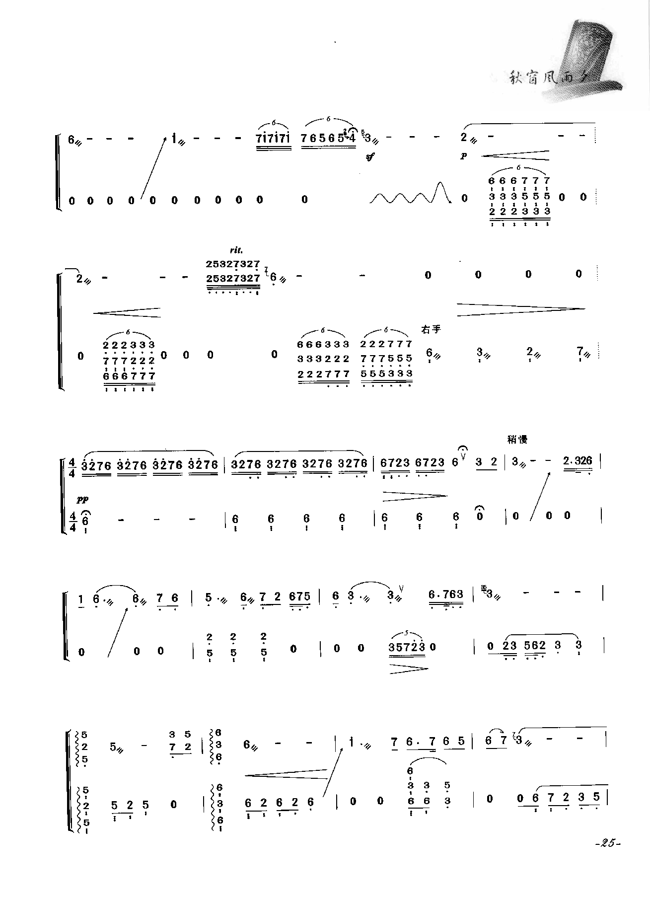 古筝独奏简谱:秋窗风雨夕(电视剧《红楼梦》插曲 筝独奏 )王立平 曲 朱晓谷 编曲