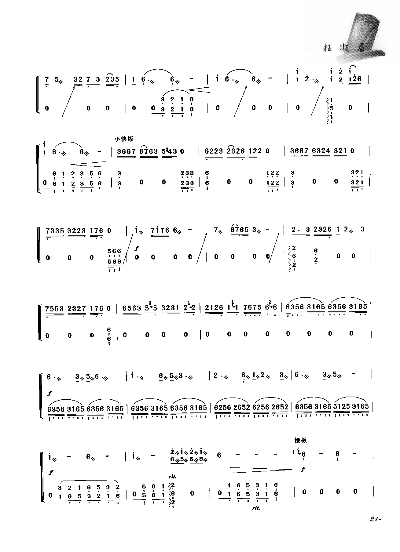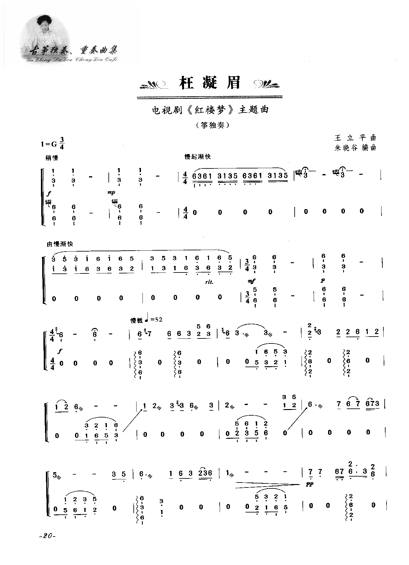 古筝独奏简谱:枉凝眉(电视剧《红楼梦》主题曲 筝独奏 )王立平 曲 朱晓谷 编曲
