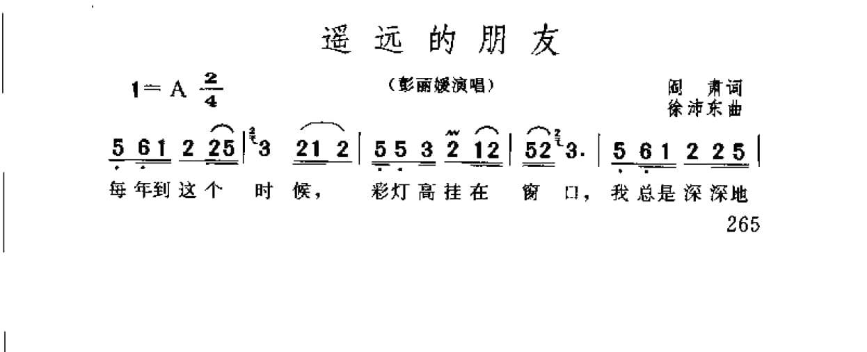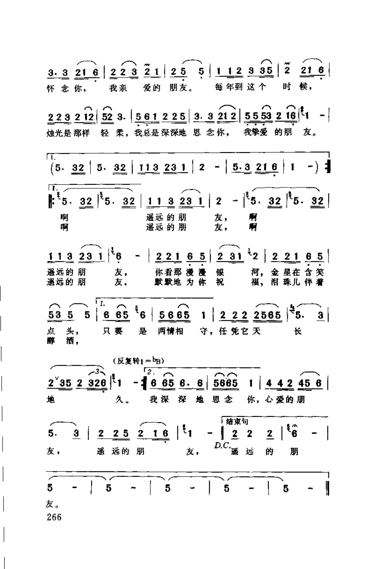 名称:通俗歌曲简谱:遥远的朋友 1995阎肃词 徐沛东曲 彭丽媛演唱