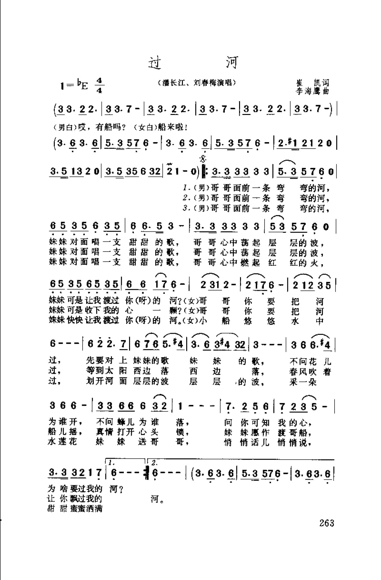 名称:通俗歌曲简谱:过河 1998崔凯词 李海鹰曲 潘长江 刘春梅演唱