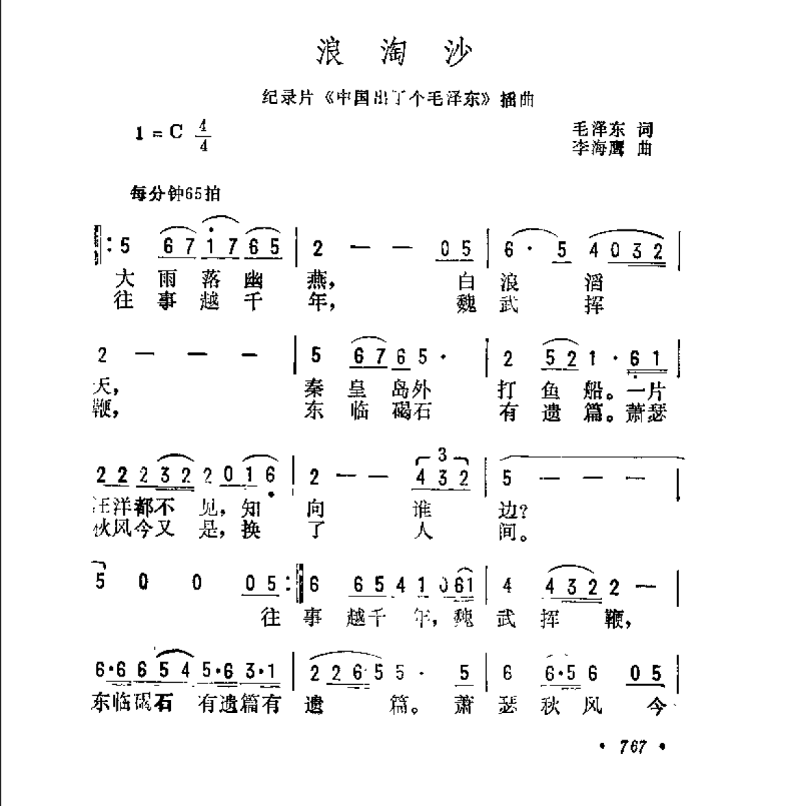 浪淘沙(纪录片《中国出了个毛泽东》插曲)毛泽东词 李海鹰曲
