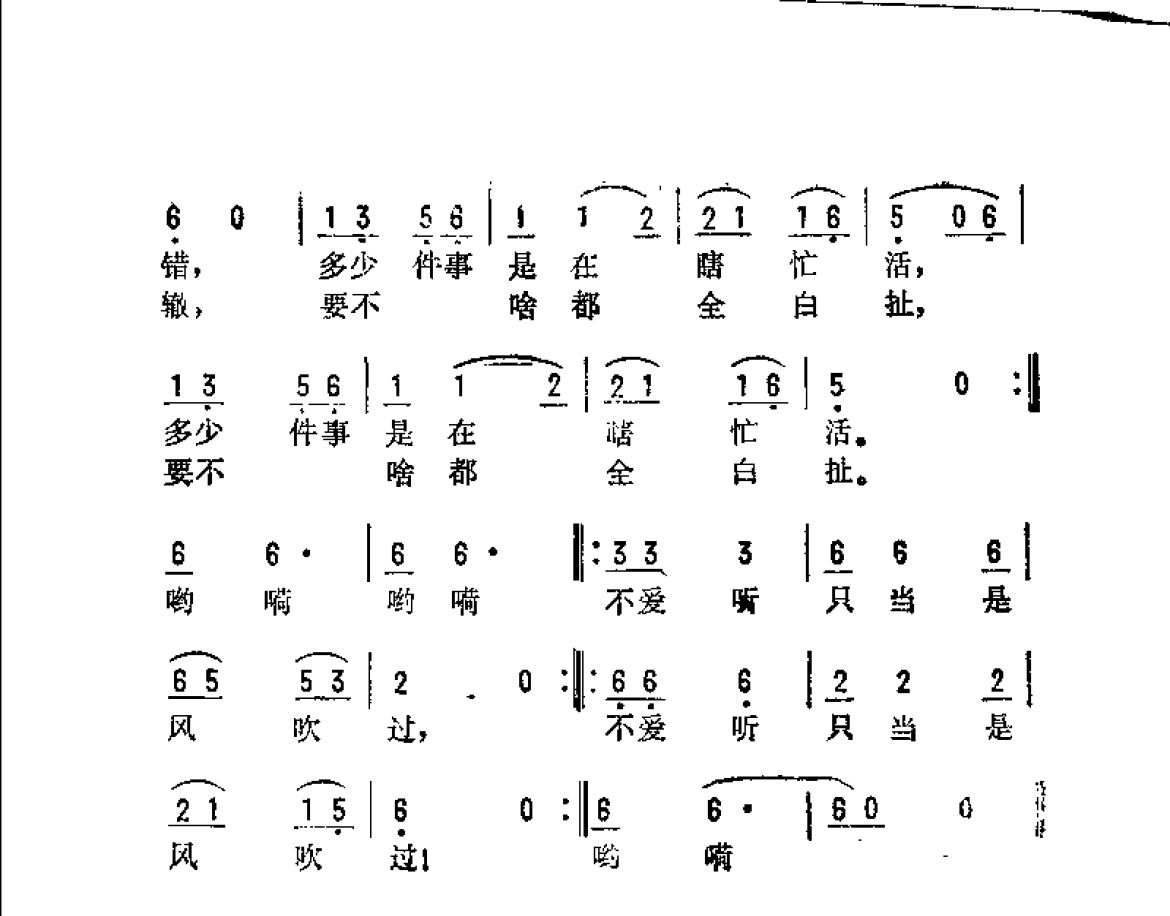 不爱听只当是风吹过(电视剧《乡下逸事》主题歌)丁小春词 徐占海曲