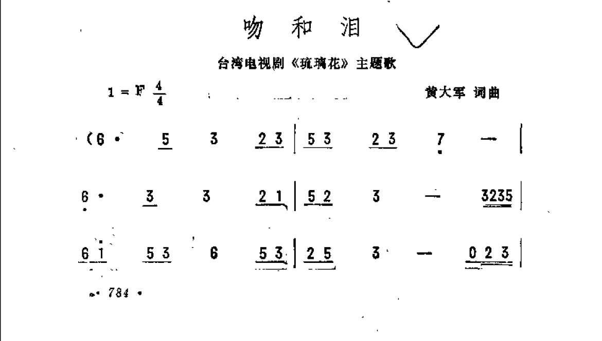 吻和泪(台湾电视剧《琉璃花》主题歌)黄大军词曲
