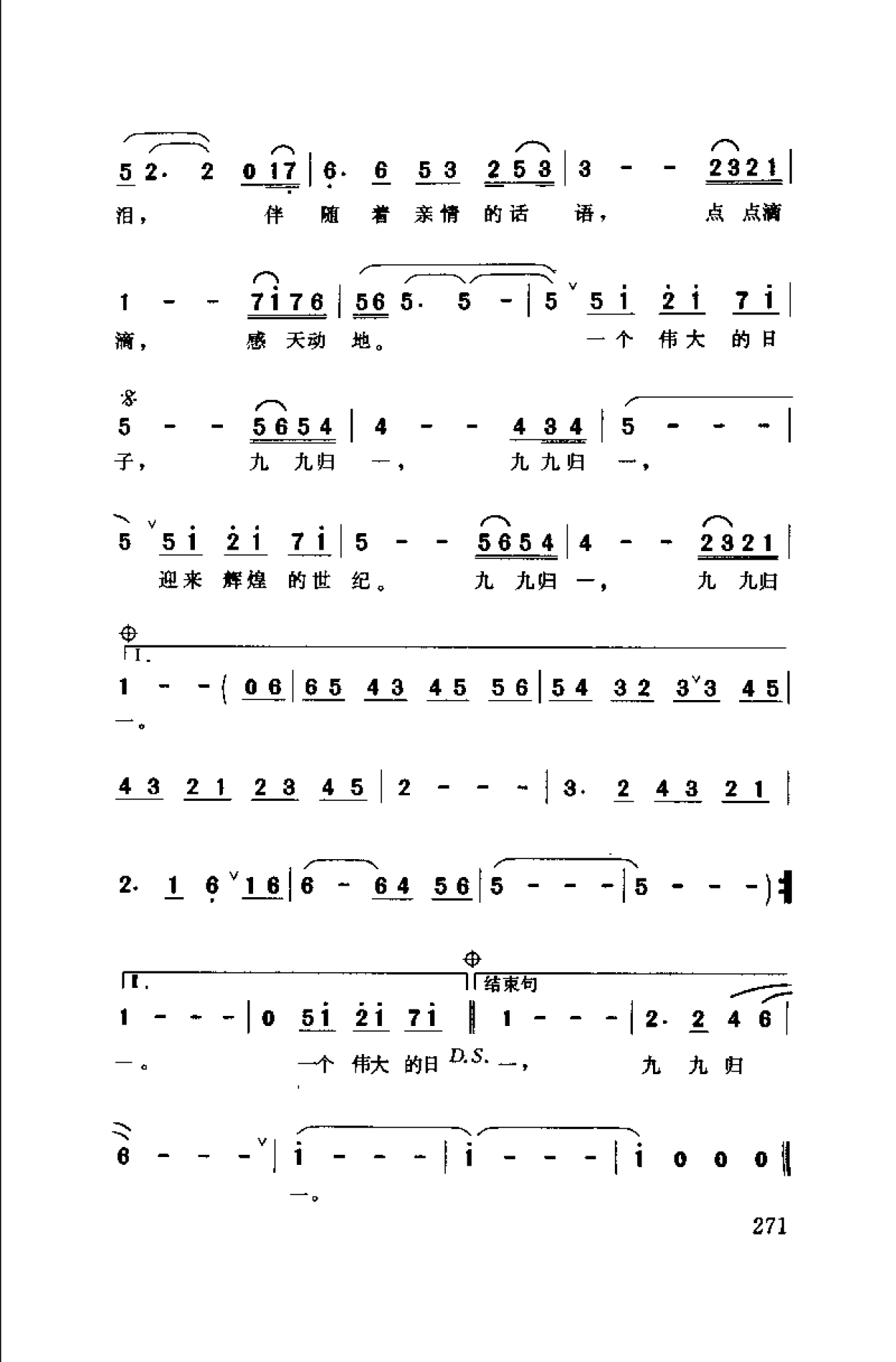 通俗歌曲简谱:九九归一·1999祁人词 陈翔宇曲(彭丽媛演唱)