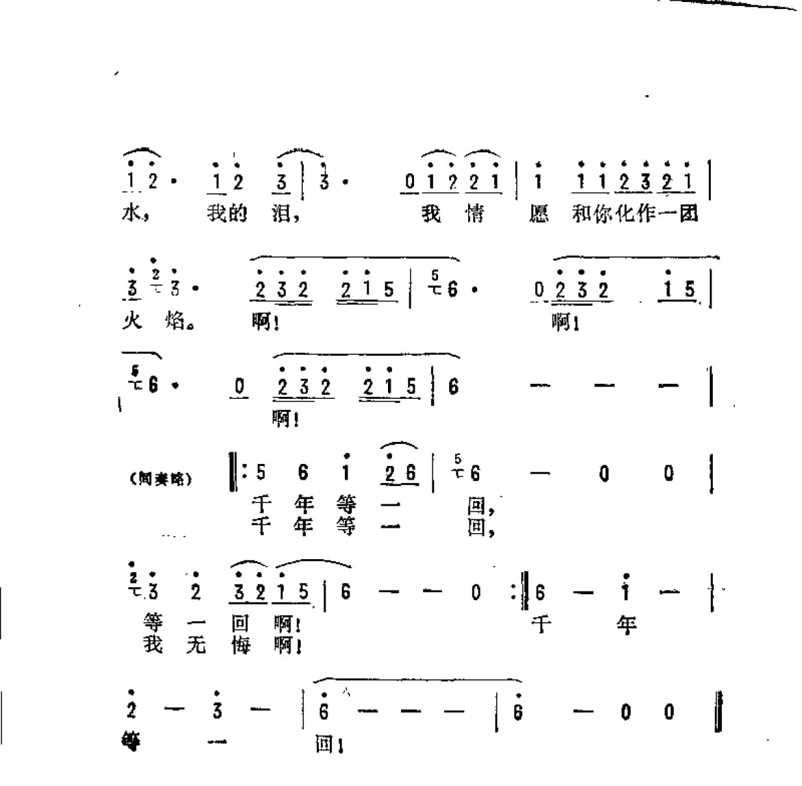 名称:千年等一回 台湾电视剧 新白娘子传奇 主题歌 佚名词曲国家:中国分类:曲谱子类:投稿类型:简谱/五线谱文件格式:jpg