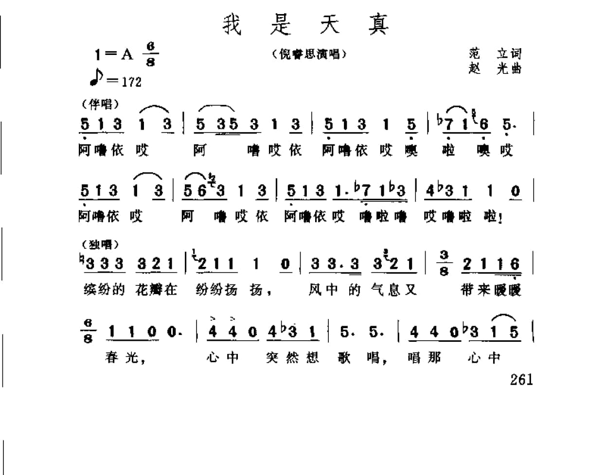通俗歌曲简谱:我是天真·2000范立词 赵光曲(倪睿思演唱)
