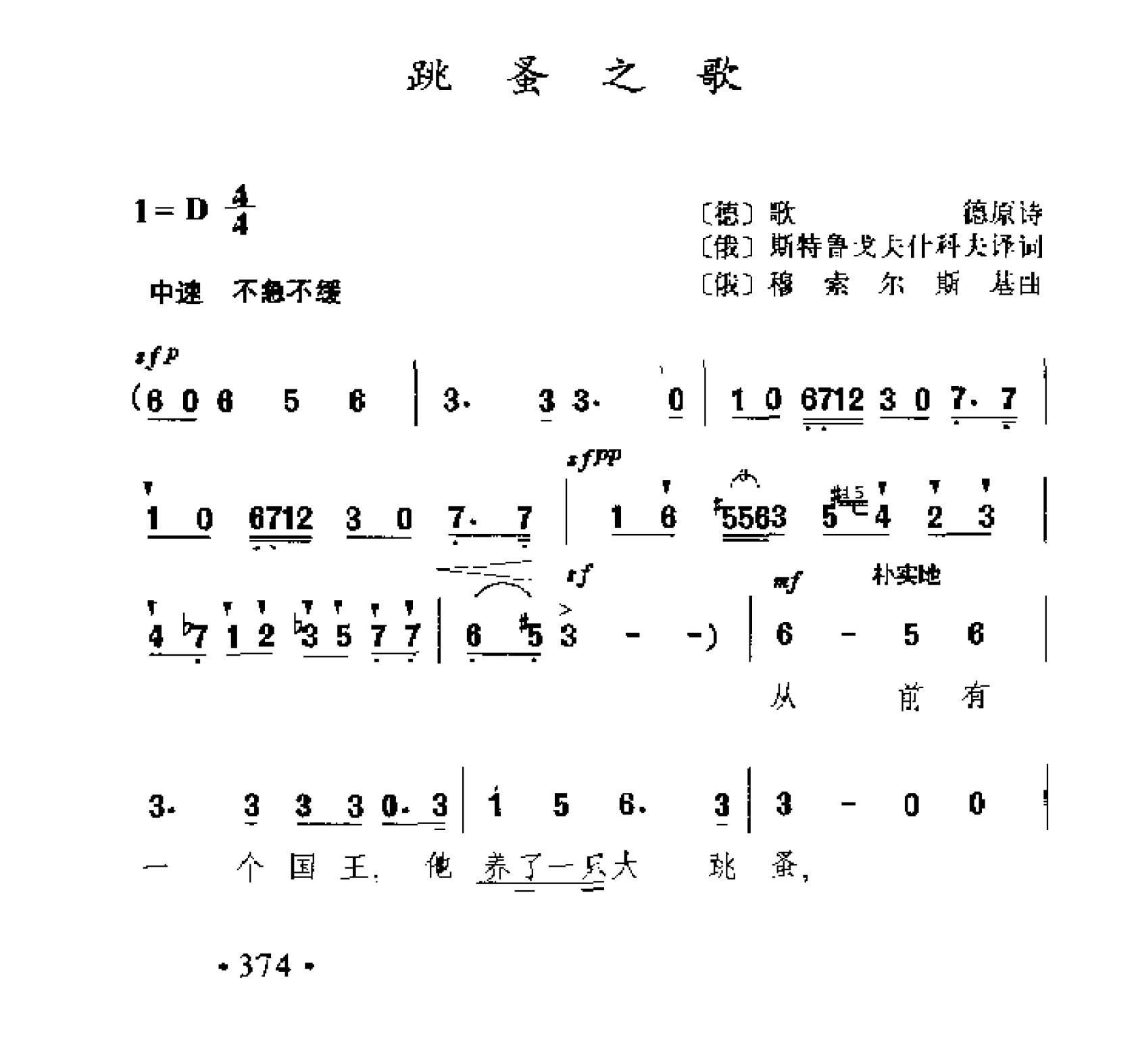 外国古典歌曲简谱:跳蚤之歌(俄)穆索尔斯基曲 简谱歌曲集 外国名歌1000首