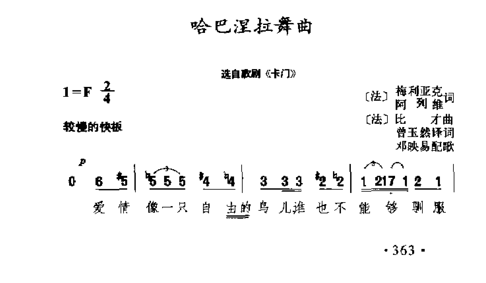 外国古典歌曲简谱:哈巴涅拉舞曲 选自歌剧《卡门》(法)比才曲简谱歌词是曲谱查询网于2025年02月05日 10:39:14更新在歌剧谱频道中的内容,收录在歌剧谱栏目中;曲谱查询网分享的外国古典歌曲简谱:哈巴涅拉舞曲 选自歌剧《卡门》(法)比才曲简谱五线谱高清图片,欢迎在线免费下载;曲谱查询网无需注册,即可直接下载海量歌曲谱与乐器学习相关资料。