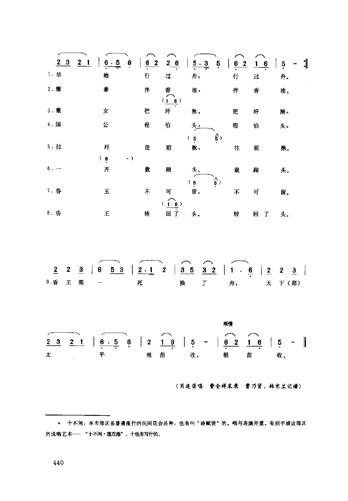 花会歌:旱地行舟 密云县(北京民间歌曲简谱)