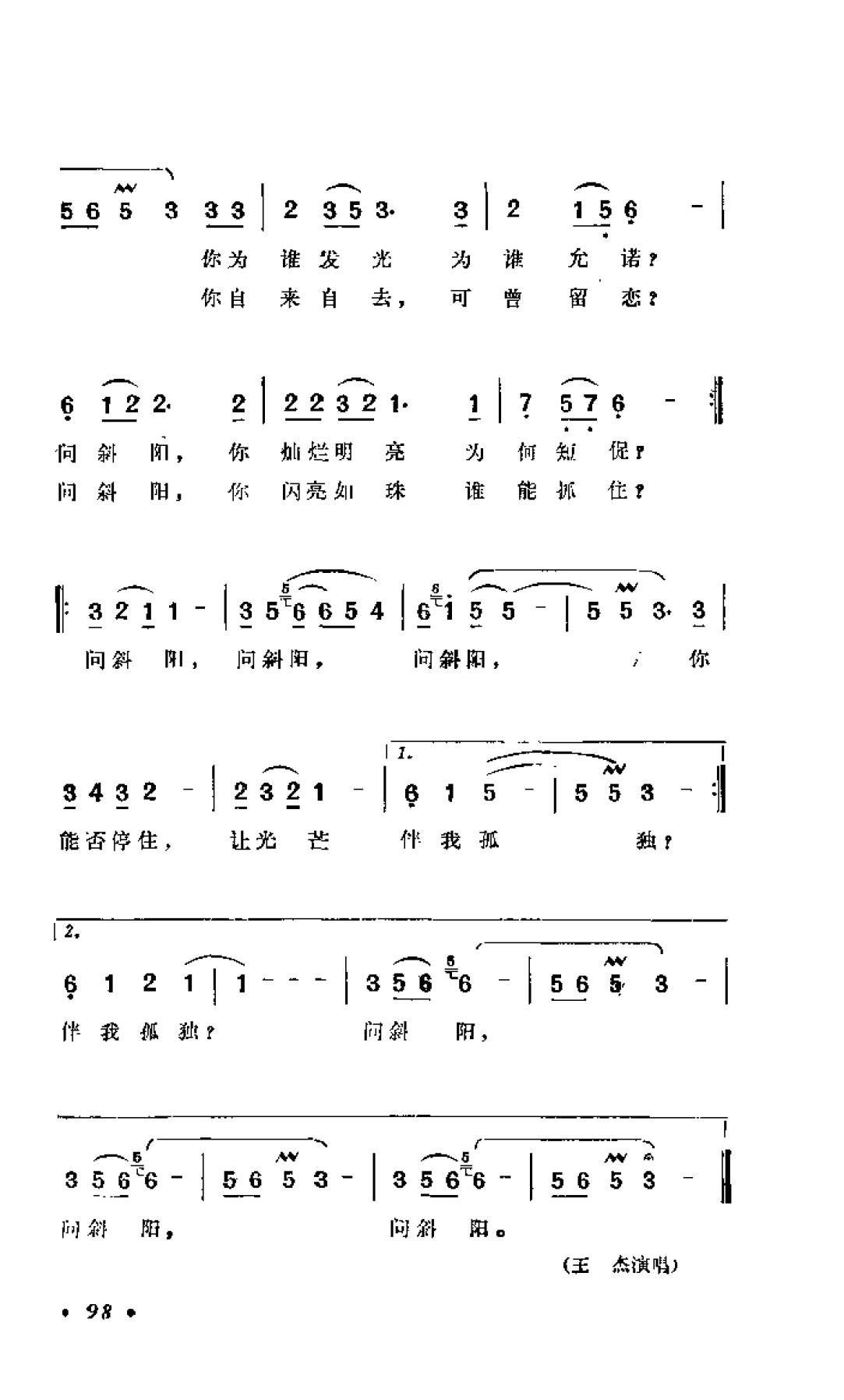 问斜阳(台湾故事影片 斜阳谷 注题歌)琼瑶词 谭健常曲