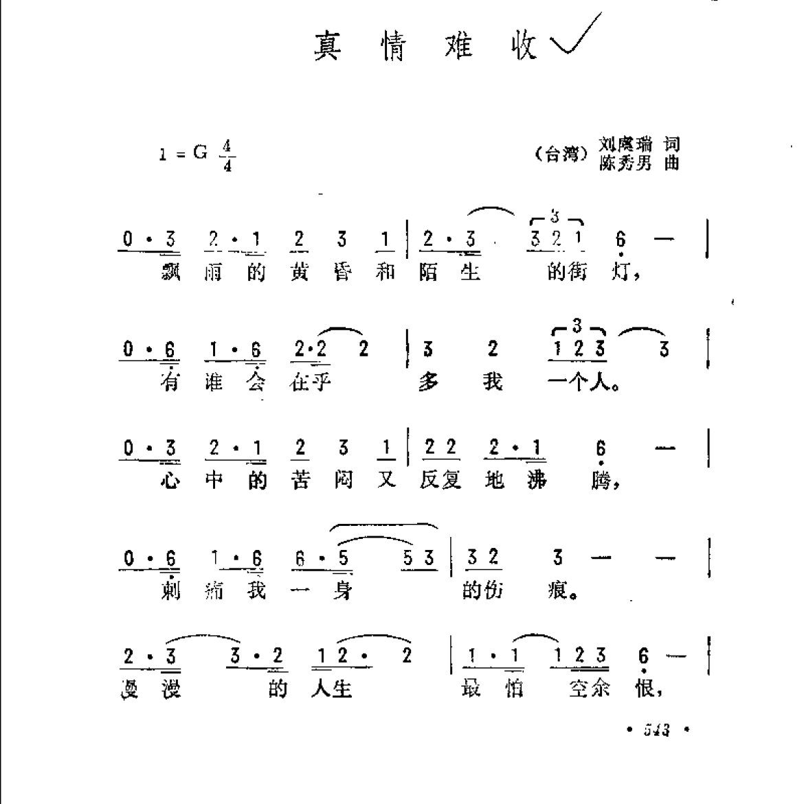 真情难收(台湾)刘虞瑞词 陈秀男曲