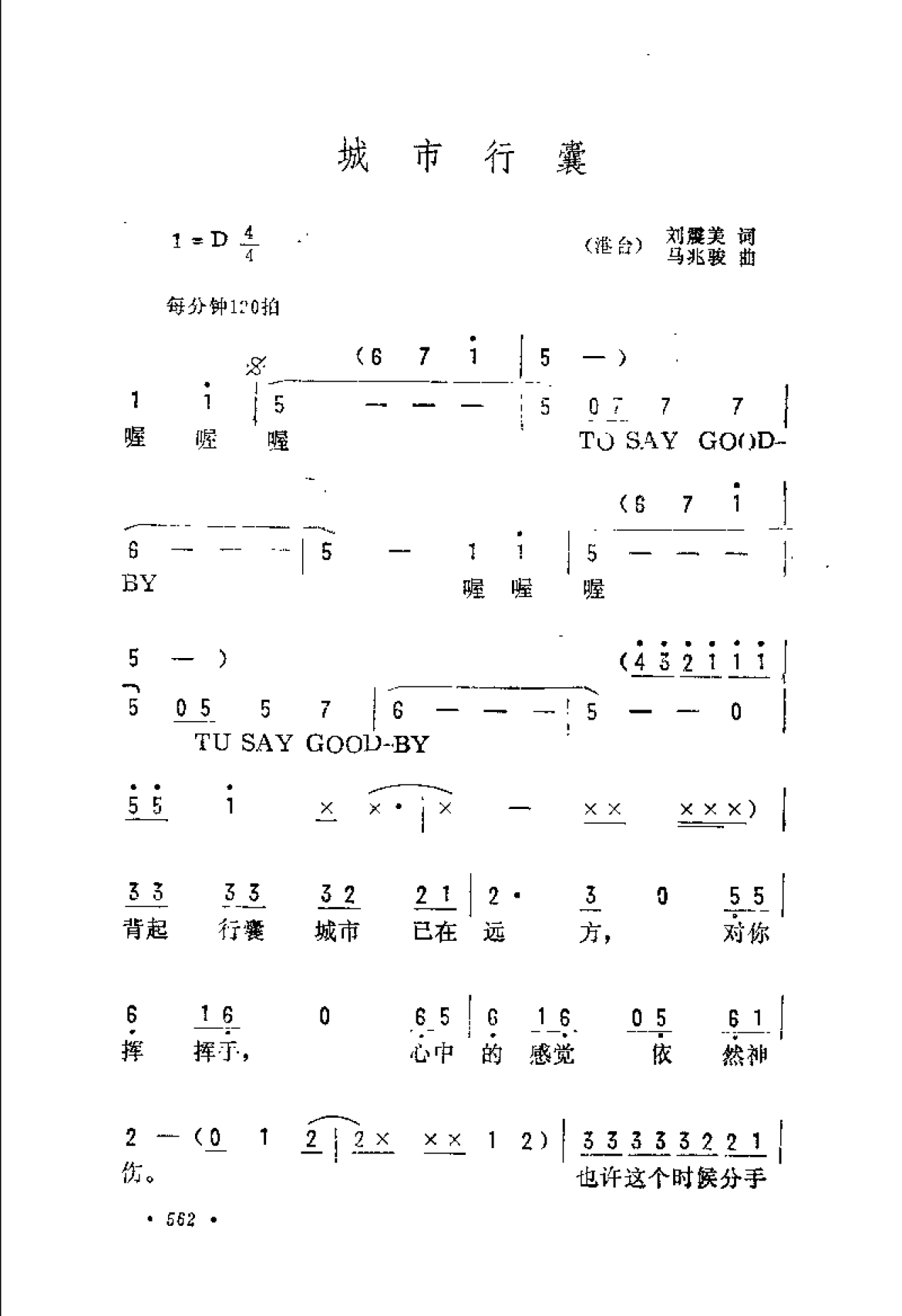 城市行囊(港台)刘震美词 马兆骏曲简谱歌词是曲谱查询网于2025年02月13日 20:08:01更新在通俗歌曲谱频道中的内容,收录在通俗歌曲谱栏目中;曲谱查询网分享的城市行囊(港台)刘震美词 马兆骏曲简谱五线谱高清图片,欢迎在线免费下载;曲谱查询网无需注册,即可直接下载海量歌曲谱与乐器学习相关资料。