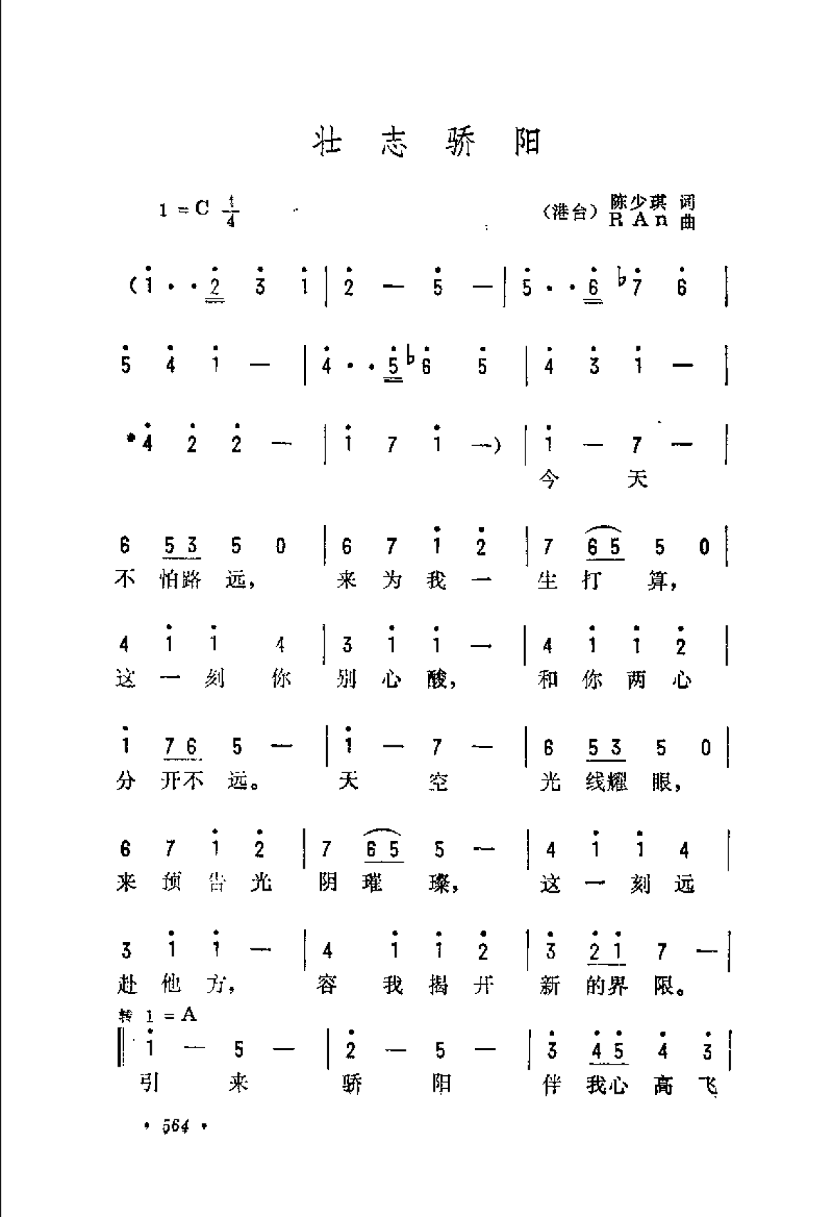 壮志骄阳(港台)陈少琪词 RAn曲简谱歌词是曲谱查询网于2025年02月13日 20:08:26更新在通俗歌曲谱频道中的内容,收录在通俗歌曲谱栏目中;曲谱查询网分享的壮志骄阳(港台)陈少琪词 RAn曲简谱五线谱高清图片,欢迎在线免费下载;曲谱查询网无需注册,即可直接下载海量歌曲谱与乐器学习相关资料。