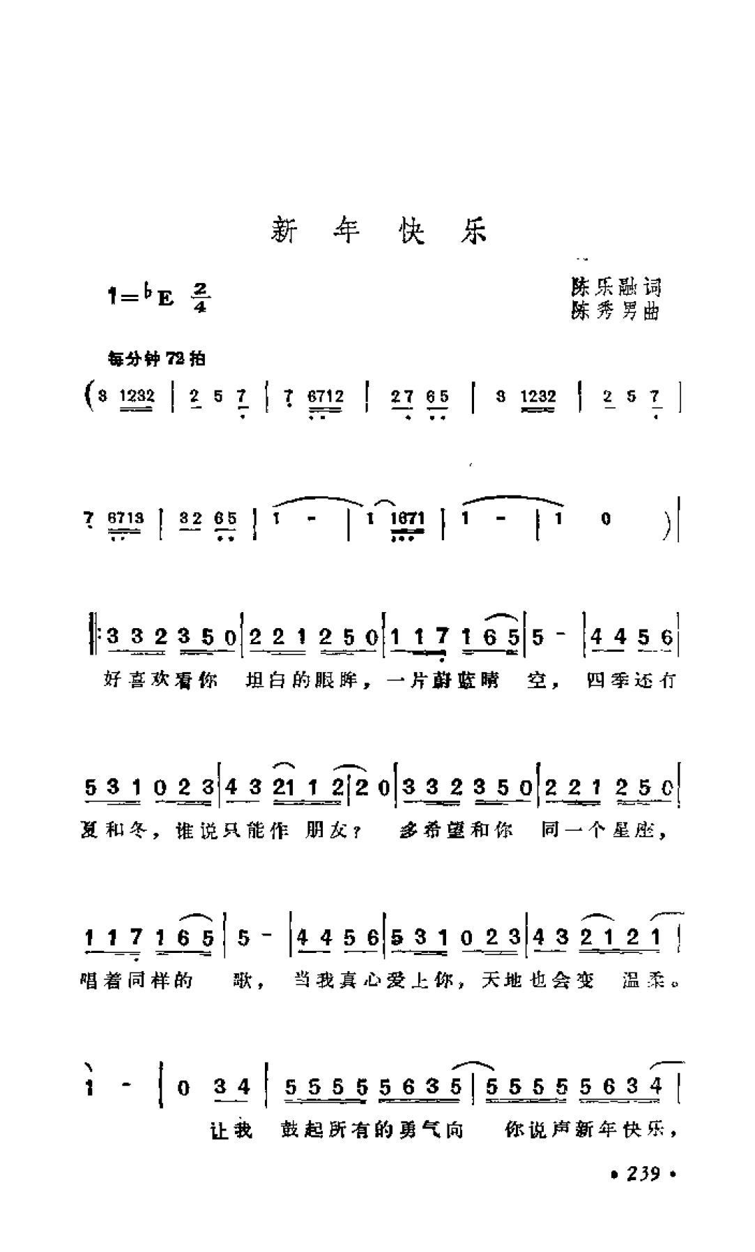 新年快乐 陈乐融词 陈秀男曲简谱歌词是曲谱查询网于2025年01月09日 11:17:13更新在通俗歌曲谱频道中的内容,收录在通俗歌曲谱栏目中;曲谱查询网分享的新年快乐 陈乐融词 陈秀男曲简谱五线谱高清图片,欢迎在线免费下载;曲谱查询网无需注册,即可直接下载海量歌曲谱与乐器学习相关资料。