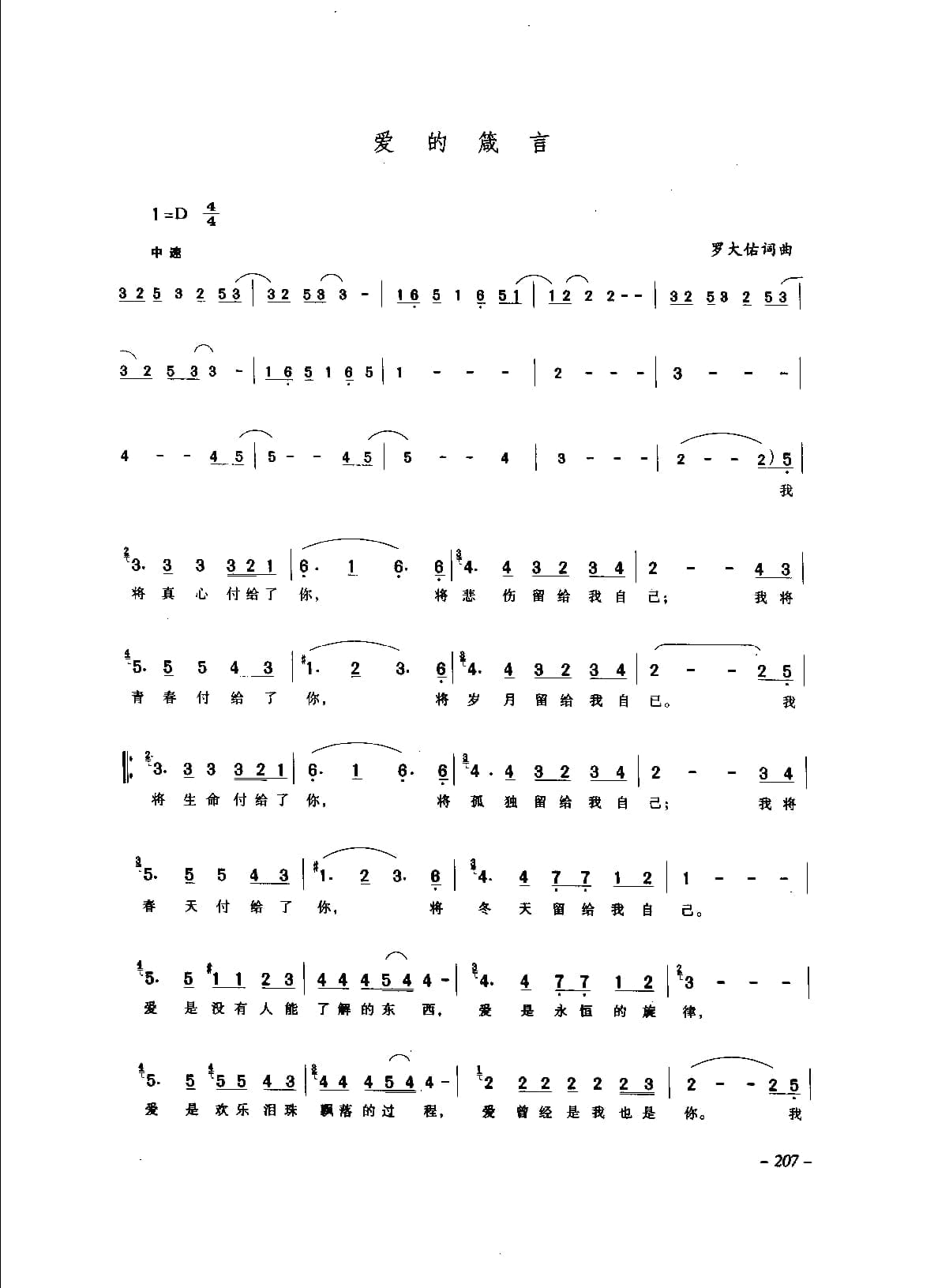 名称:爱的箴言 罗大佑词曲国家:中国分类:声乐谱子类:通俗唱法歌谱类型:简谱/五线谱文件格式:jpg