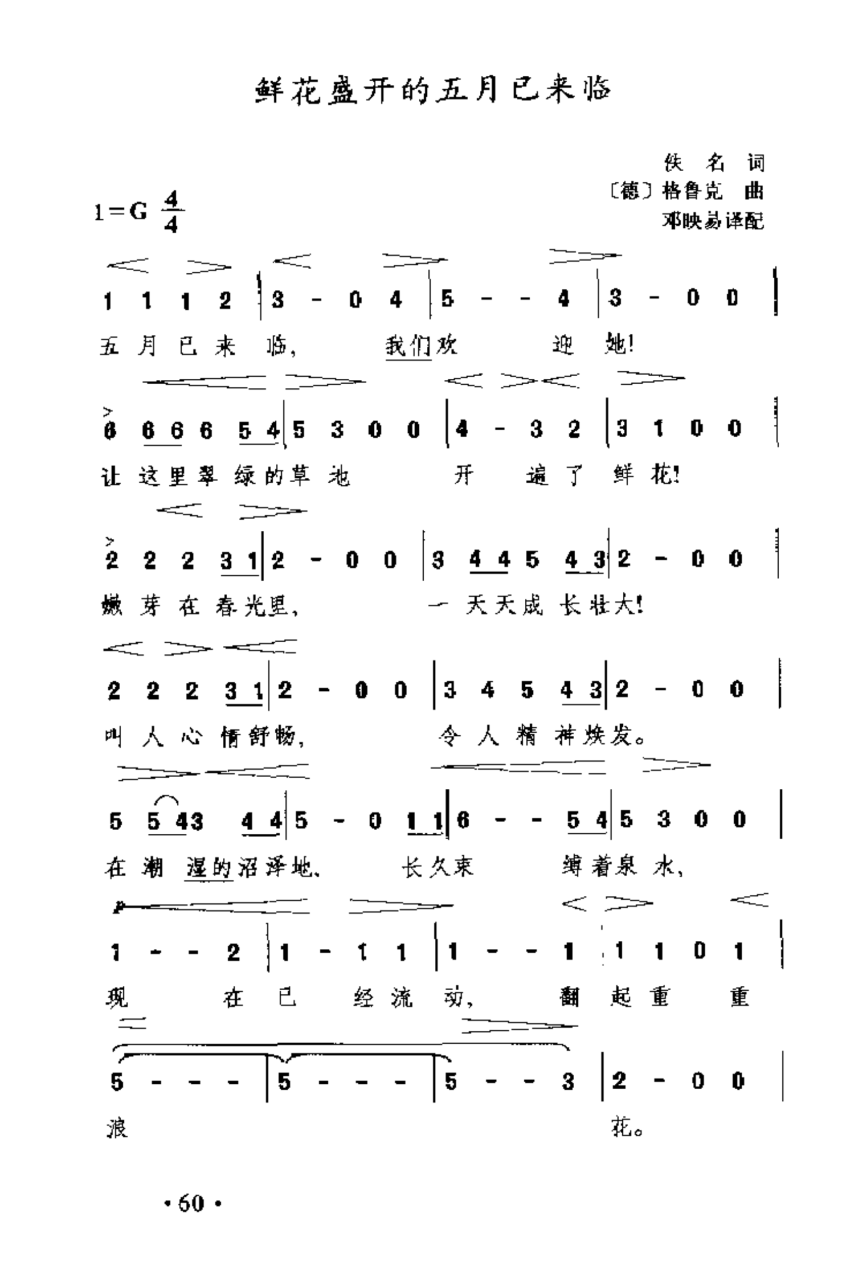 外国古典歌曲简谱:鲜花盛开的五月已来临(德)格鲁克曲 简谱歌曲集 外国名歌1000首