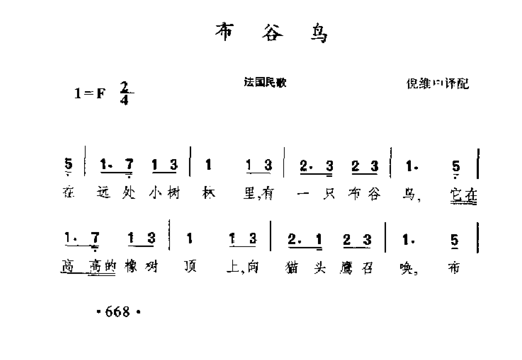 外国民间歌曲简谱:布谷鸟(法国民歌)简谱歌词是曲谱查询网于2025年02月06日 10:55:45更新在外国曲谱频道中的内容,收录在外国曲谱栏目中;曲谱查询网分享的外国民间歌曲简谱:布谷鸟(法国民歌)简谱五线谱高清图片,欢迎在线免费下载;曲谱查询网无需注册,即可直接下载海量歌曲谱与乐器学习相关资料。