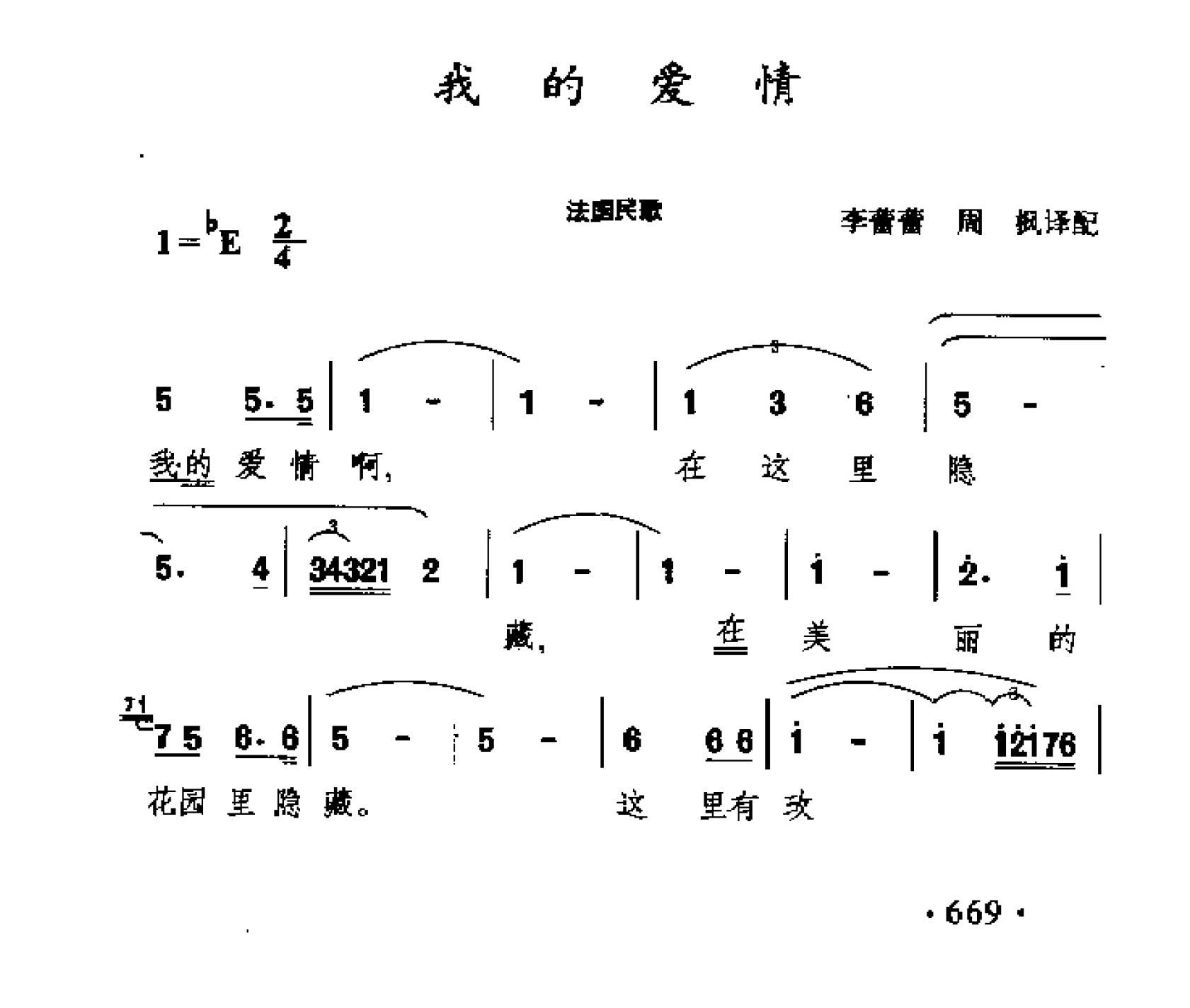 外国民间歌曲简谱:我的爱情(法国民歌)