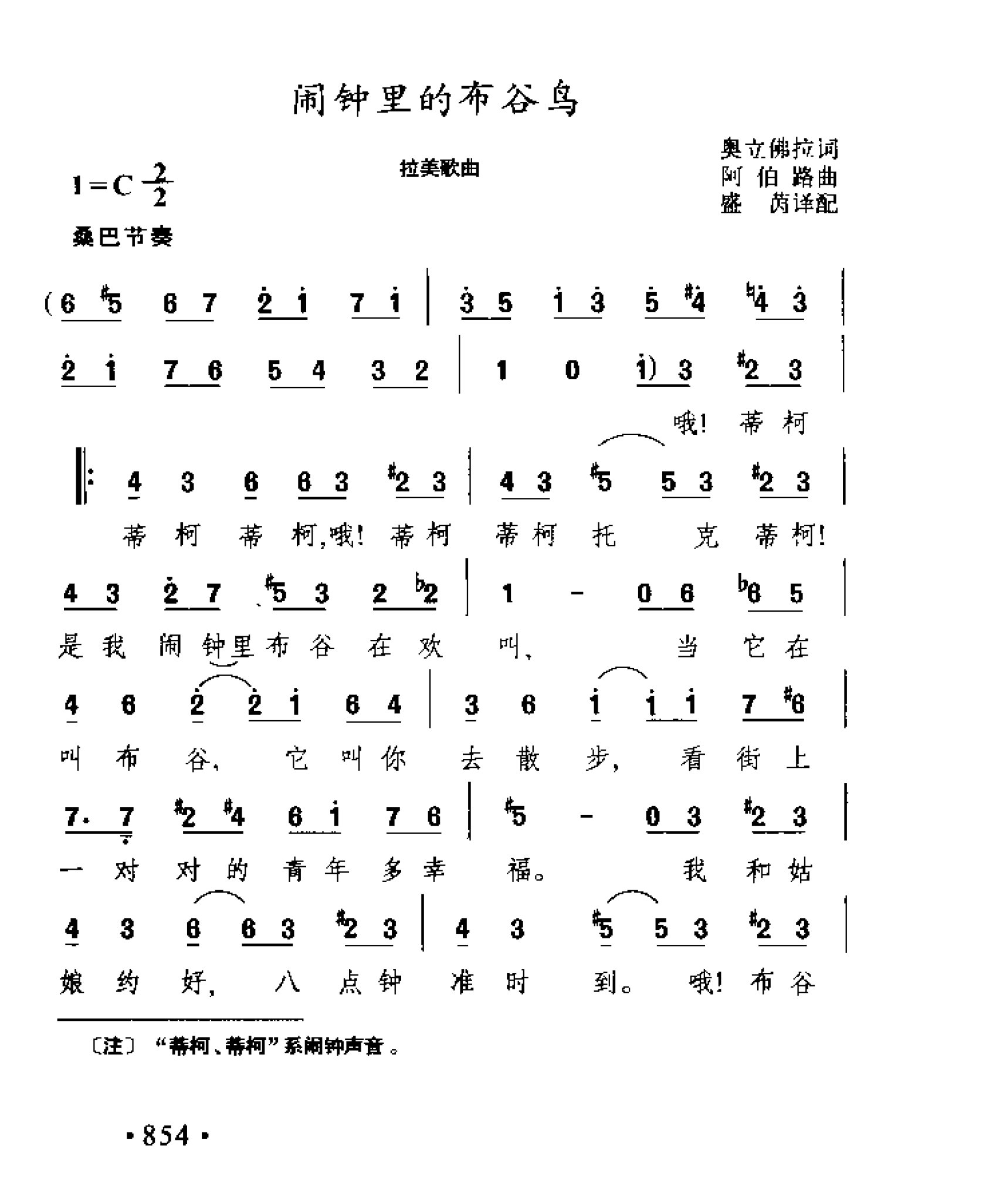 外国现代歌曲简谱:闹钟里的布谷鸟 拉美歌曲