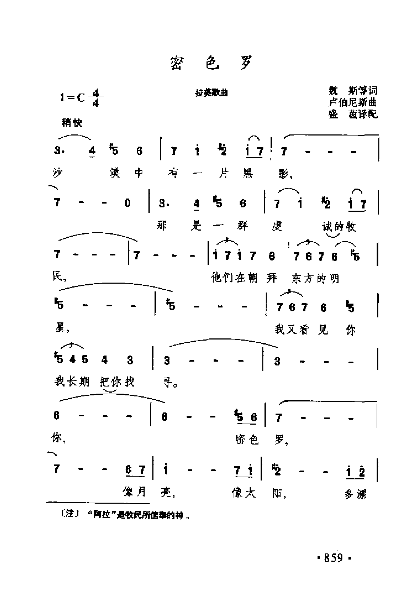 外国现代歌曲简谱:密色罗 拉美歌曲
