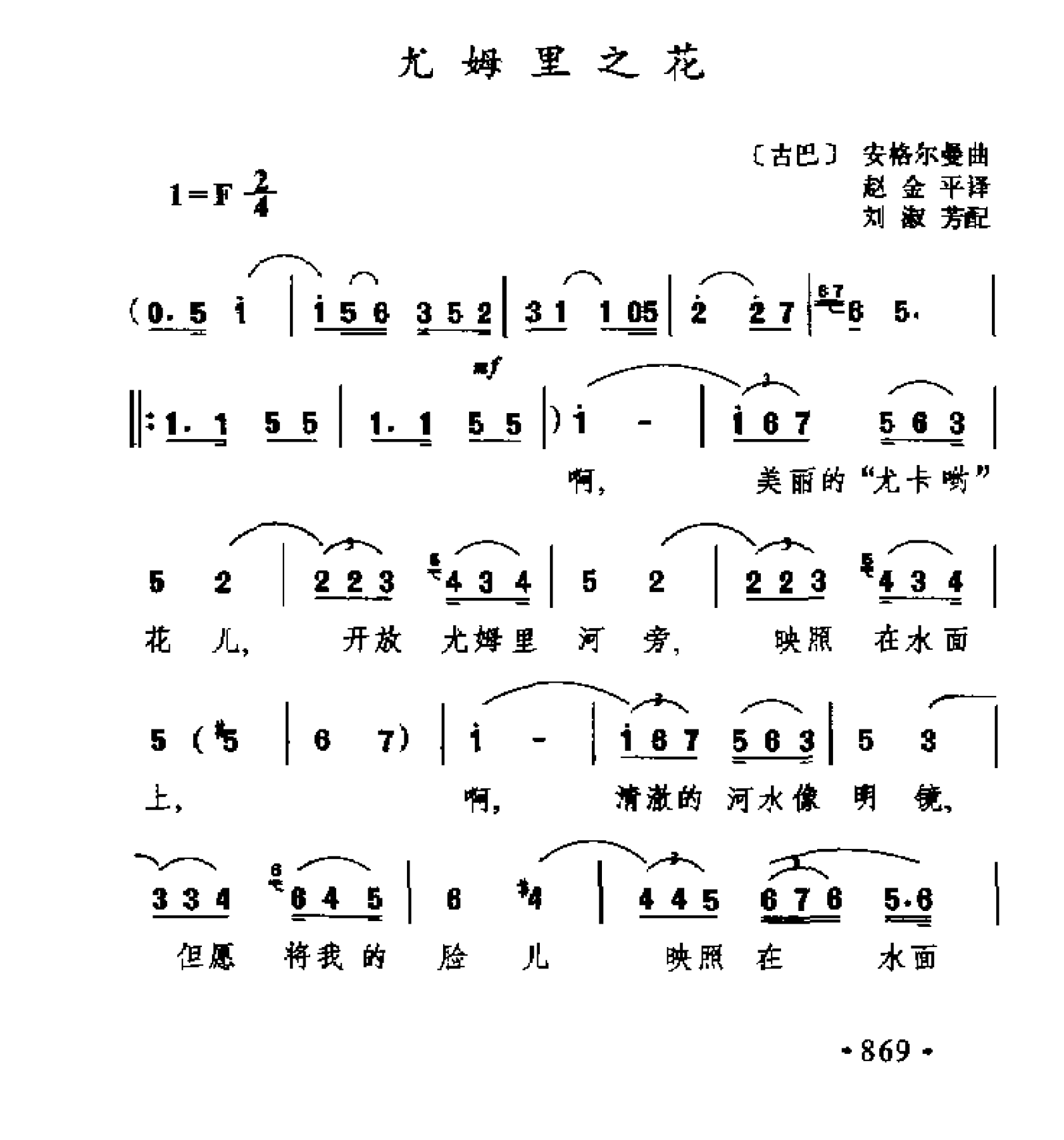 外国现代歌曲简谱:尤姆里之花(古巴)安格尔曼曲