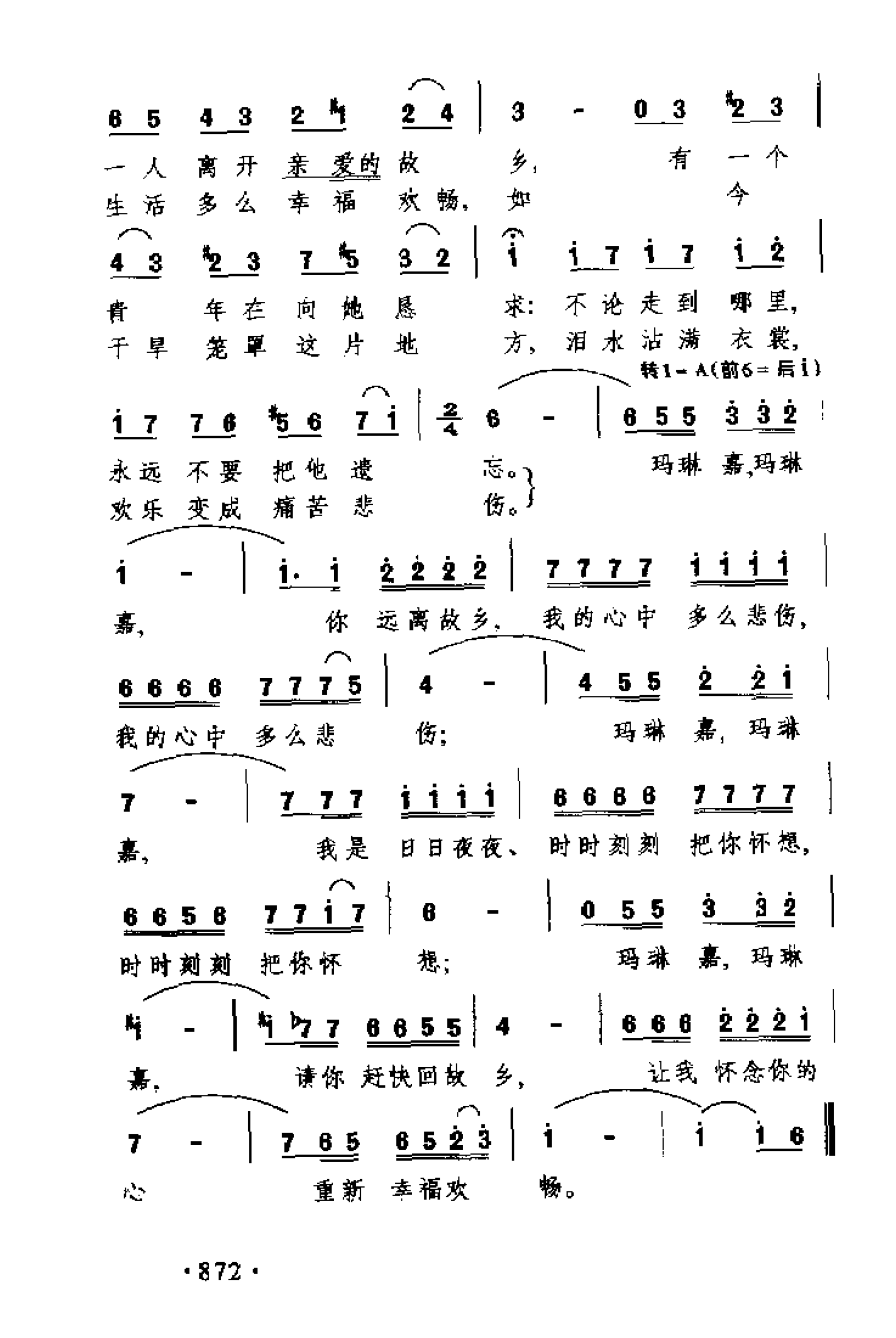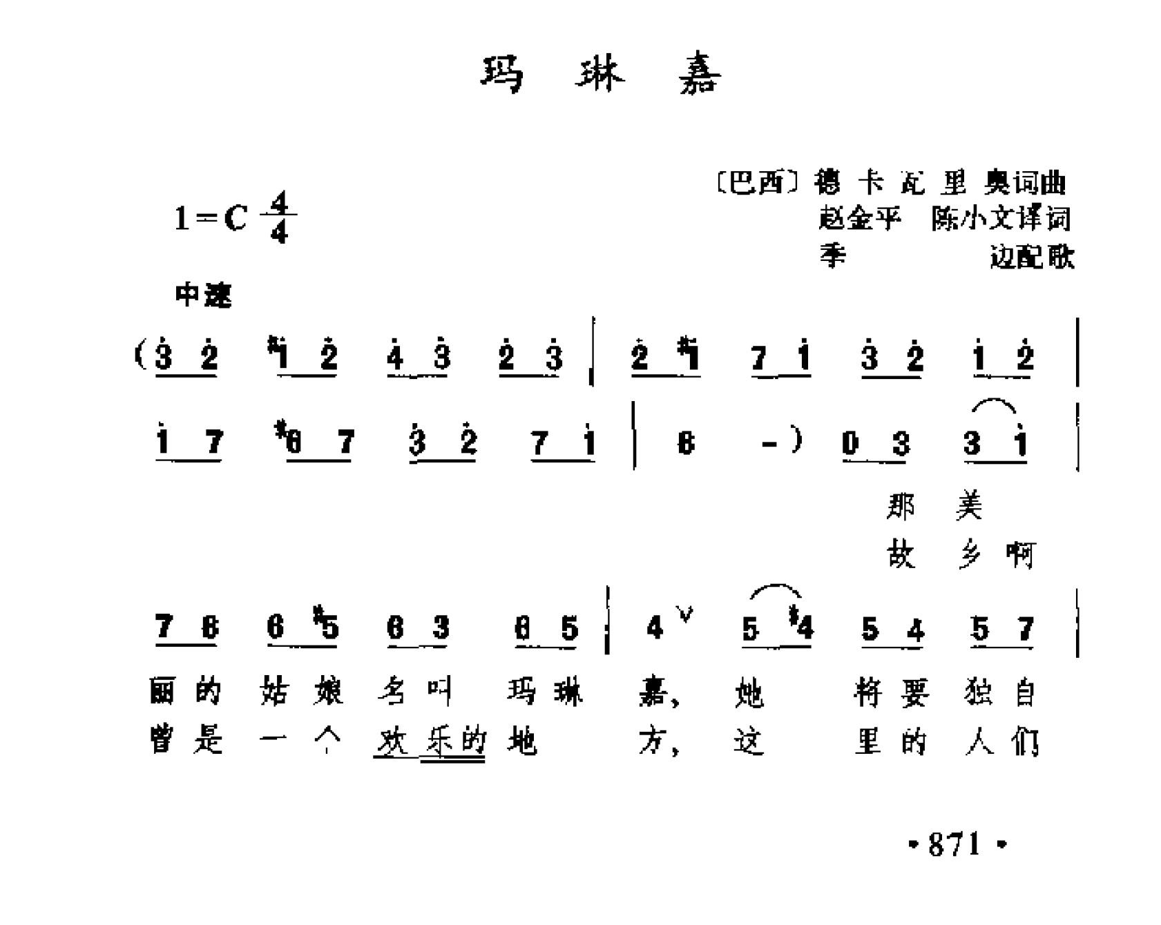 外国现代歌曲简谱:玛琳嘉(巴西)德卡瓦里奥曲