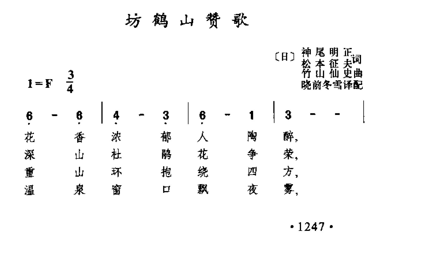 坊鹤山赞歌(日)竹山仙史曲简谱歌词是曲谱查询网于2025年02月08日 10:07:46更新在外国曲谱频道中的内容,收录在外国曲谱栏目中;曲谱查询网分享的坊鹤山赞歌(日)竹山仙史曲简谱五线谱高清图片,欢迎在线免费下载;曲谱查询网无需注册,即可直接下载海量歌曲谱与乐器学习相关资料。