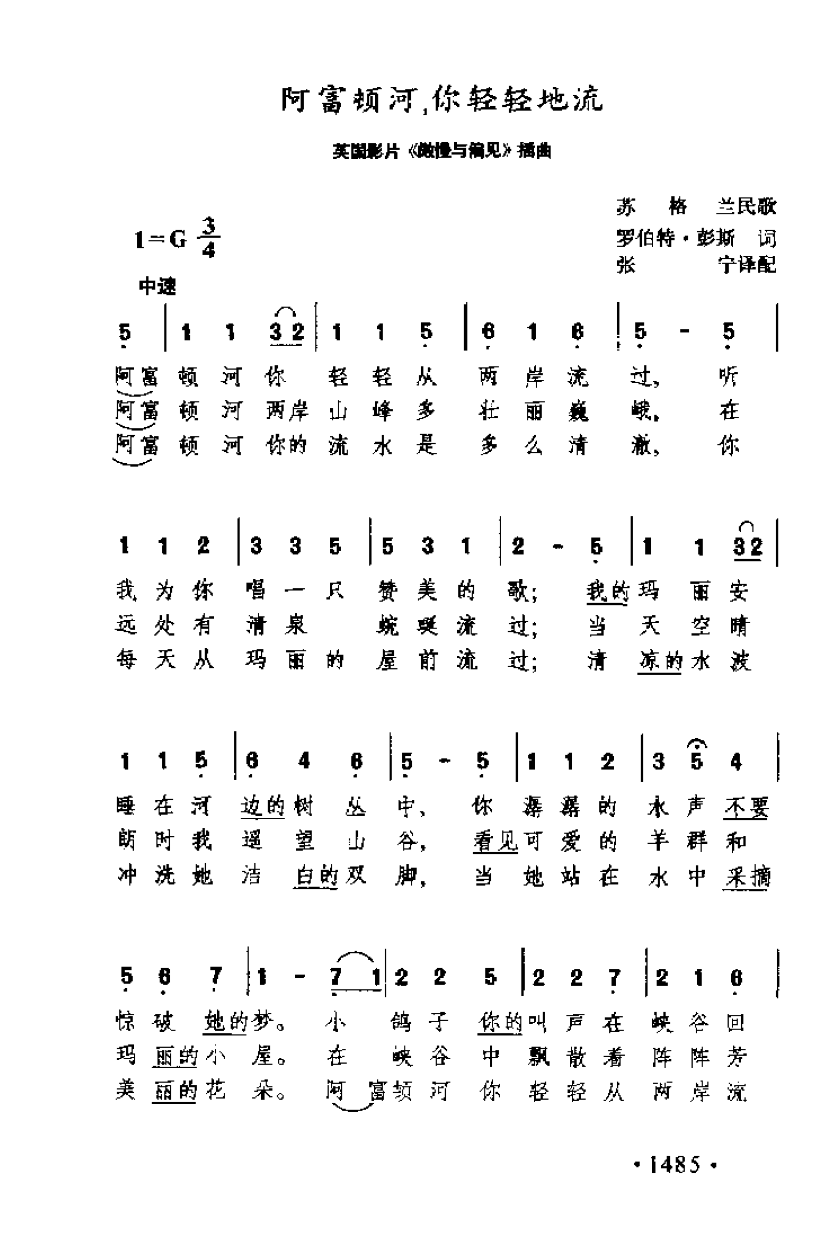 阿富顿河 你轻轻地流 英国影片《傲慢与偏见》插曲 苏格兰民歌