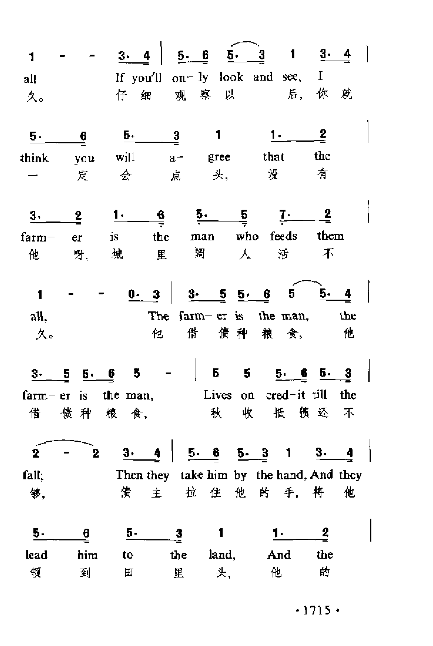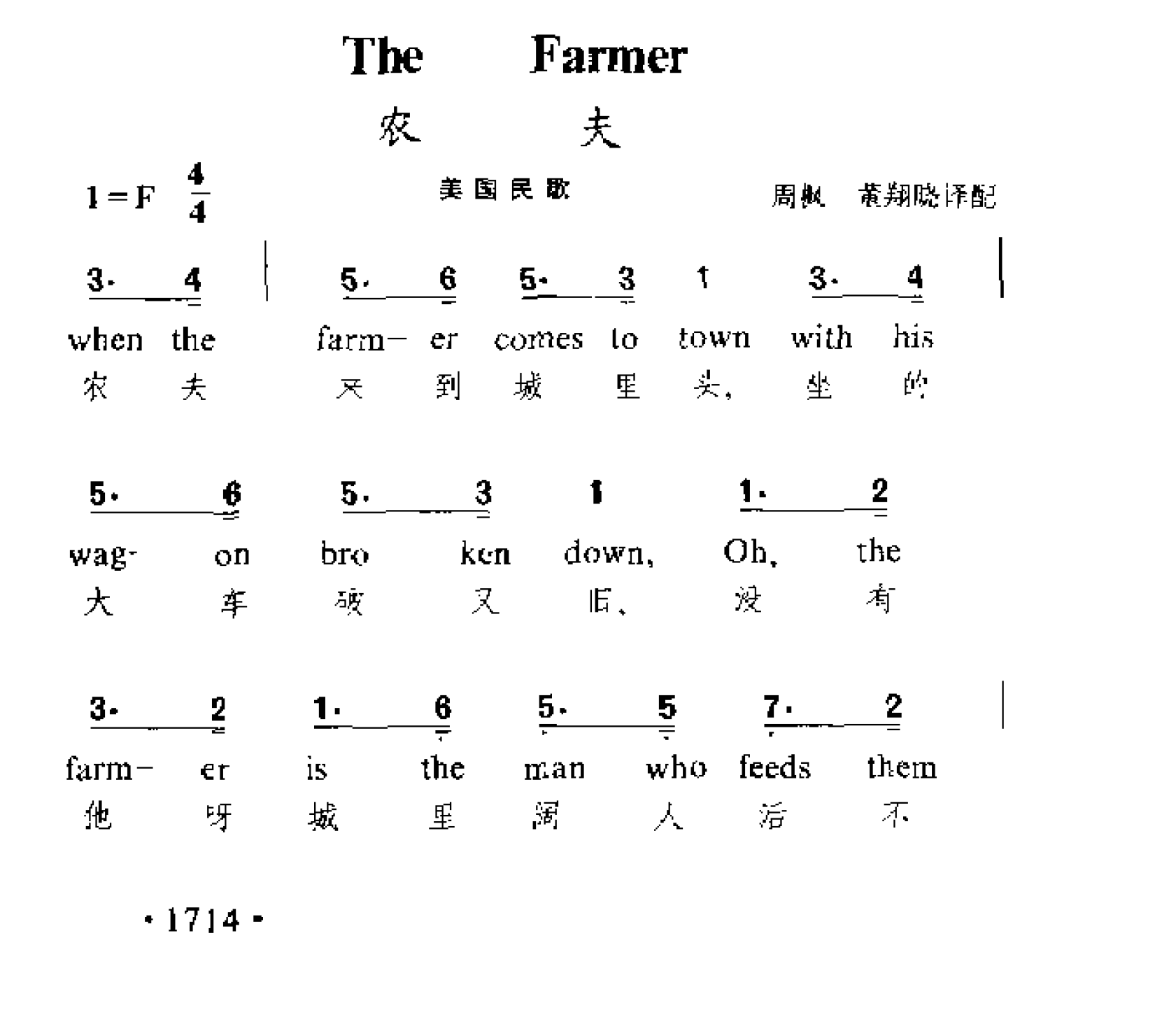 农夫 美国民歌简谱歌词是曲谱查询网于2025年02月10日 15:02:11更新在外国曲谱频道中的内容,收录在外国曲谱栏目中;曲谱查询网分享的农夫 美国民歌简谱五线谱高清图片,欢迎在线免费下载;曲谱查询网无需注册,即可直接下载海量歌曲谱与乐器学习相关资料。
