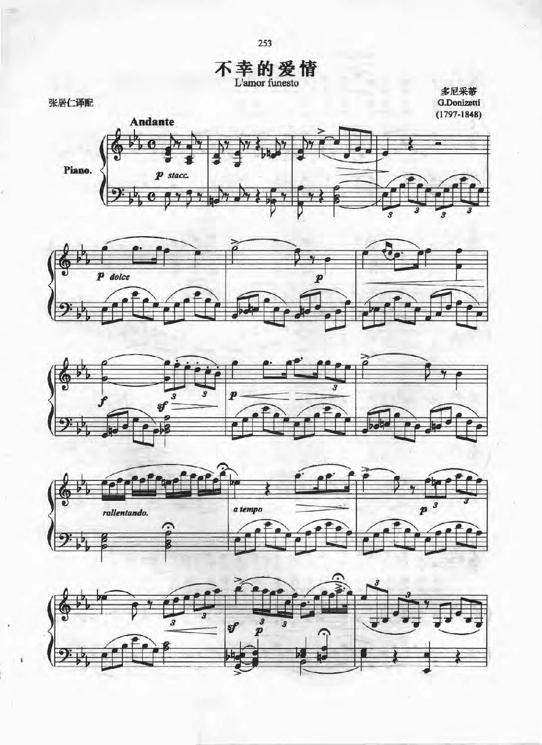 名称:意大利歌曲:不幸的爱情 L'amor funesto 多尼采蒂 G.Donizetti,1797 1848 五线谱国家:意大利分类:歌谱子类:外国歌谱类型:五线谱文件格式:jpg意大利歌曲:不幸的爱情(L'amor funesto)多尼采蒂(G.Donizetti,1797-1848)五线谱