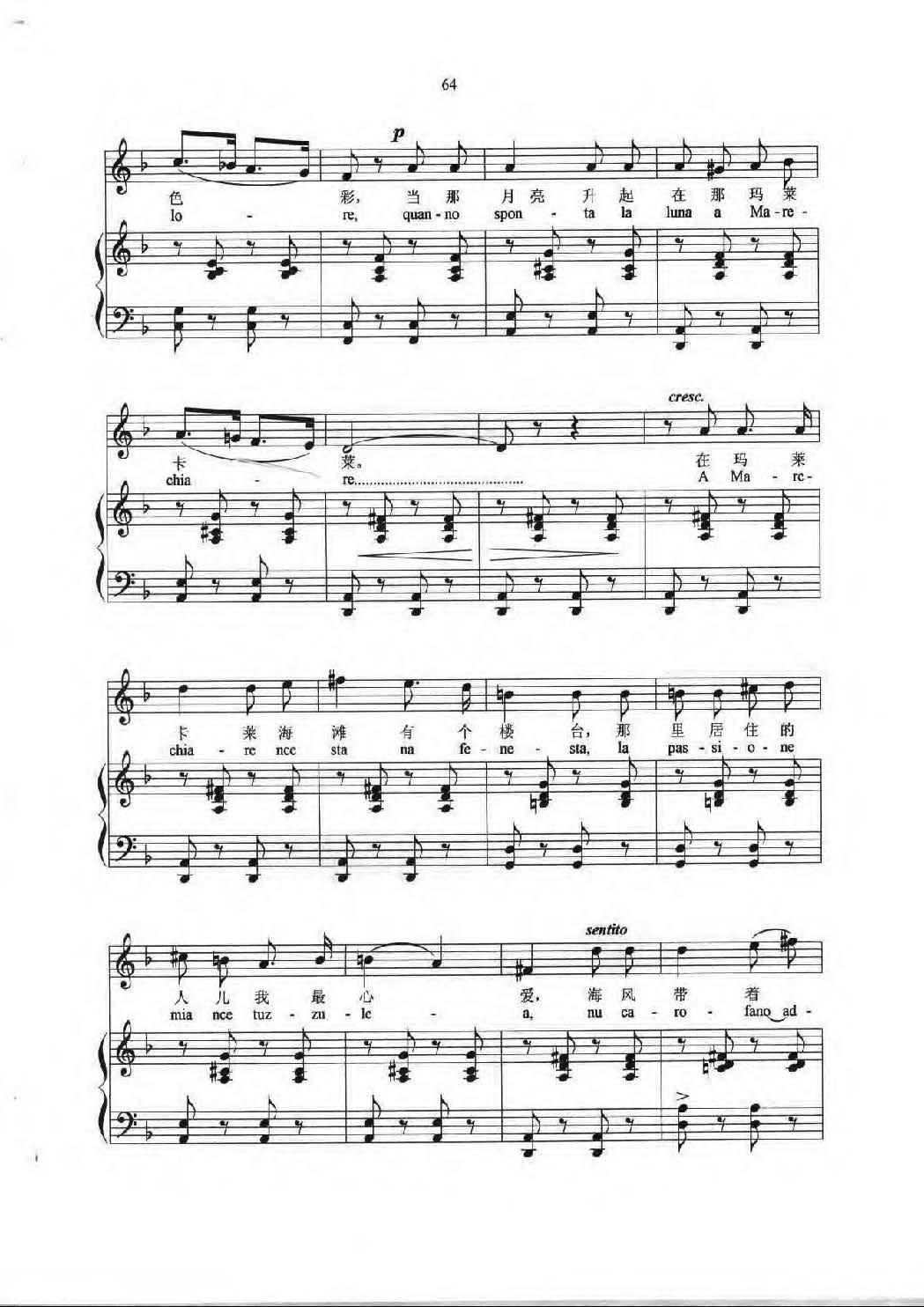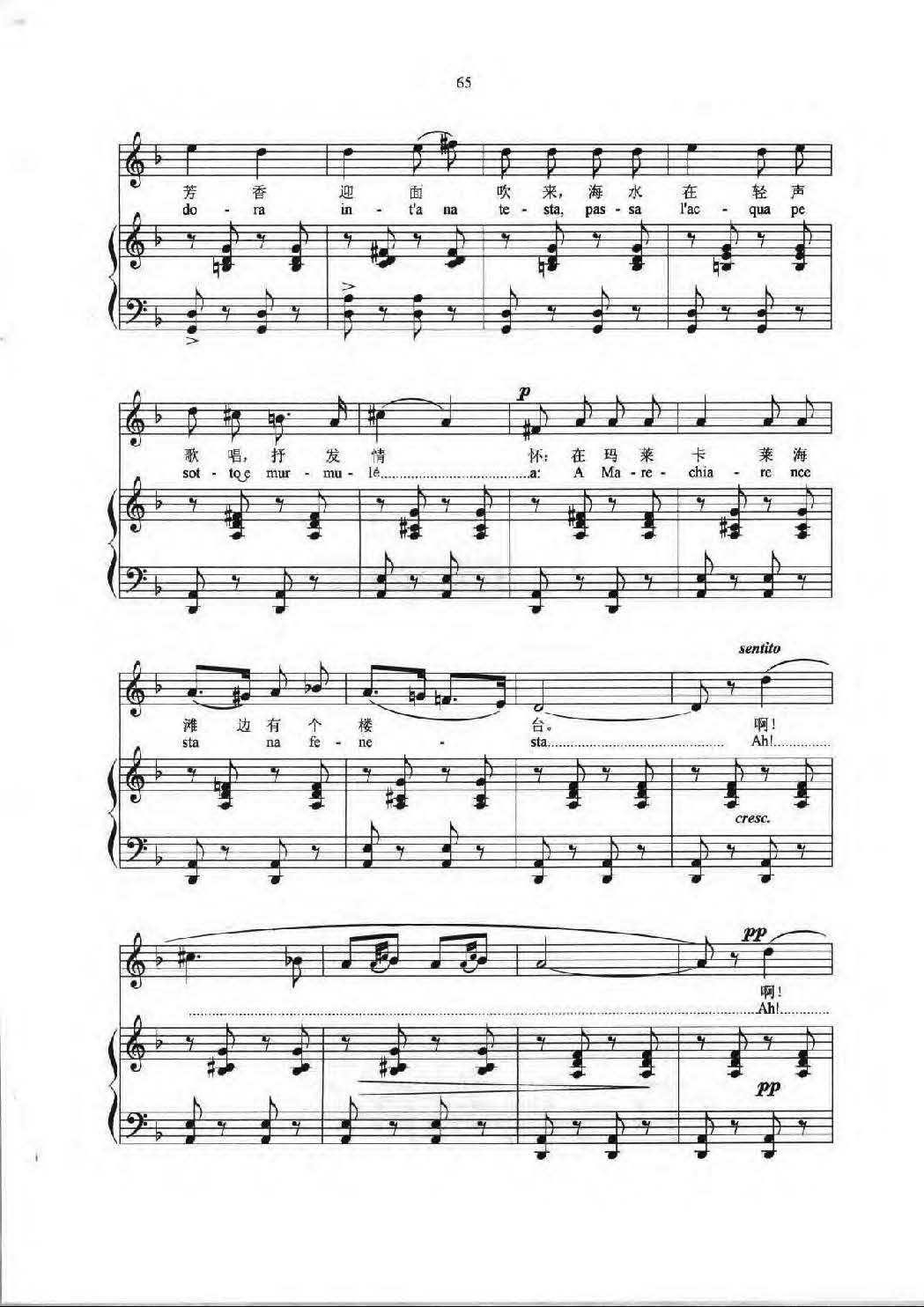 [意大利歌曲]马莱卡莱(Marechiare)托斯蒂(F.P.Tosti 1846-1916)五线谱
