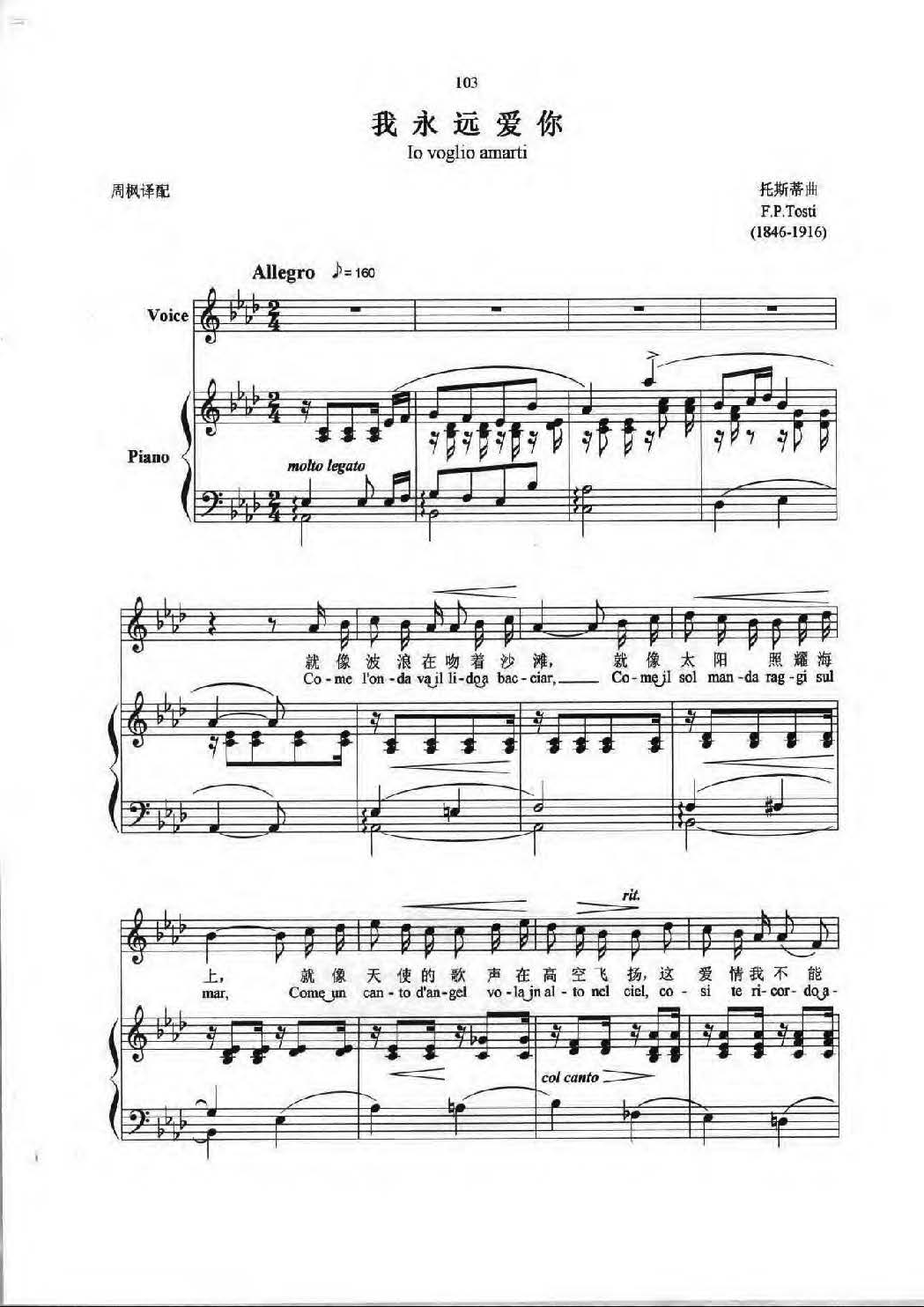 [意大利歌曲]我永远爱你(Io voglio amarti)托斯蒂(F.P.Tosti 1846-1916)五线谱