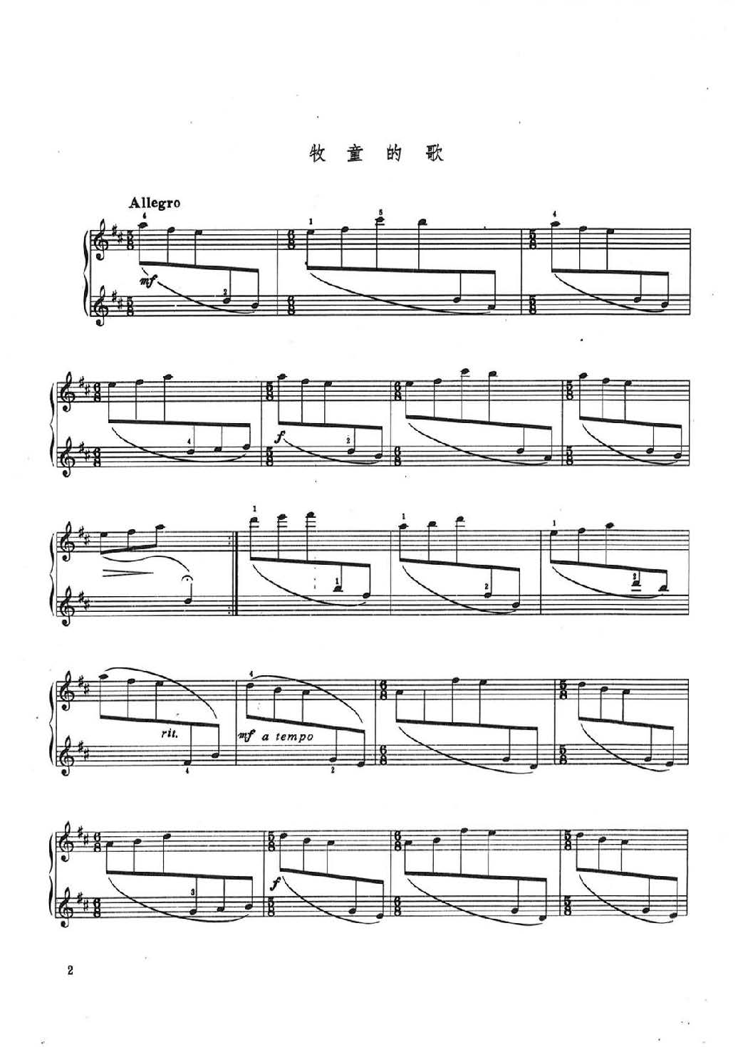 中国钢琴名曲五线谱:儿童小曲(牧童的歌)李重光
