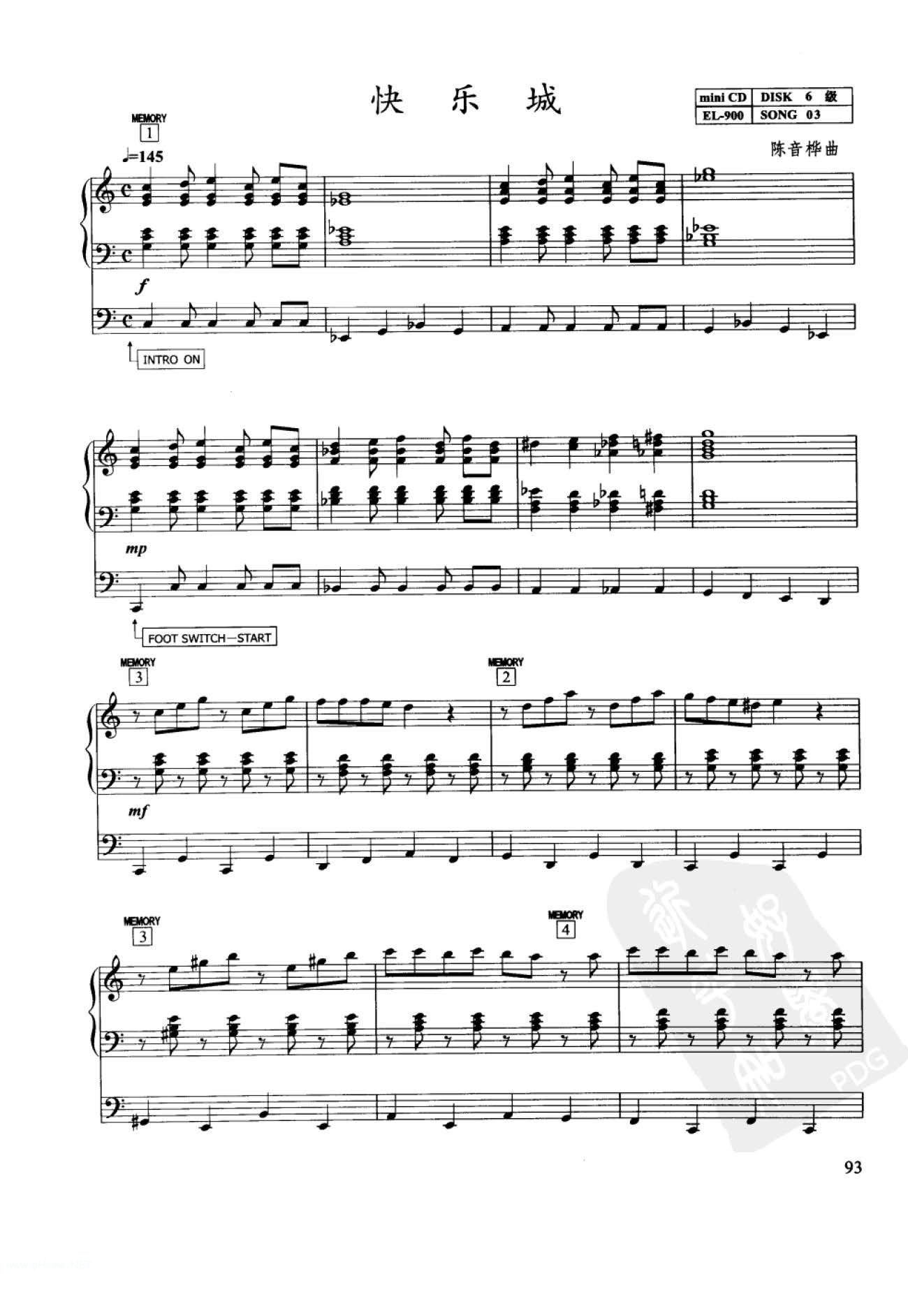 双排键电子琴考级曲目:快乐城 陈音桦曲(六级)五线谱