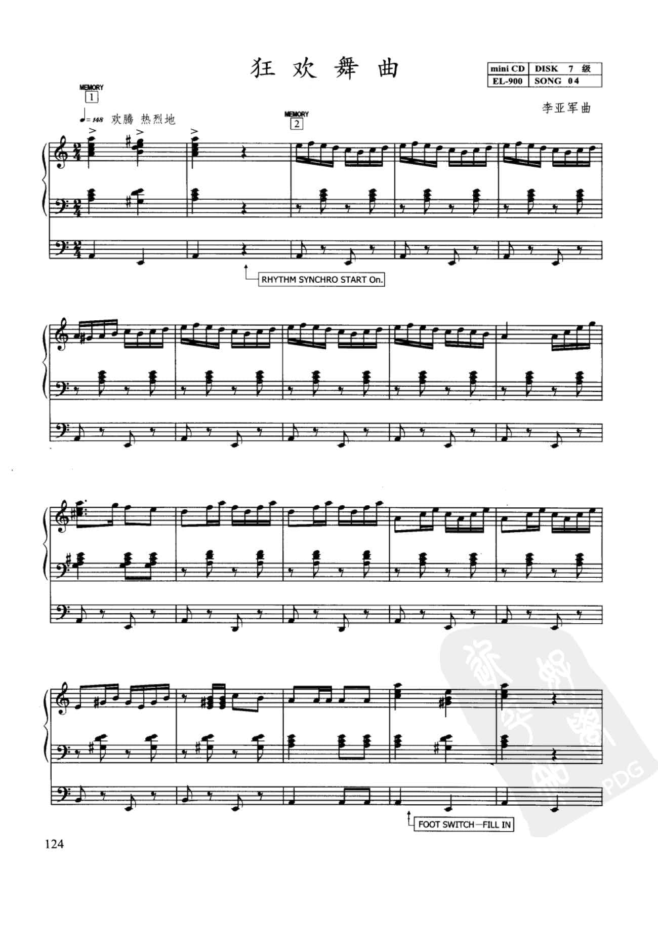 狂欢舞曲 李亚军曲(双排键电子琴七级考级曲目五线谱)