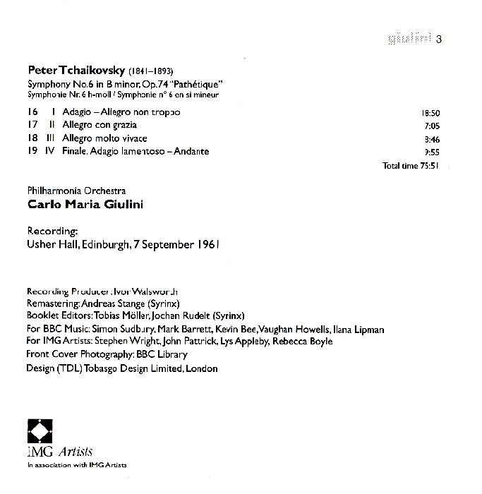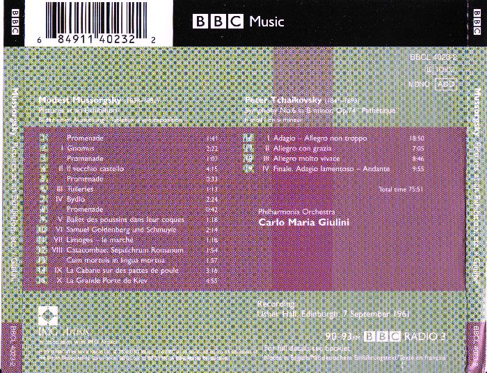 BBC Legends BBCL 4023. Giulini: Tchaikovsky – Symphony no.6 Pahtétique, Mussorgsky – Pictures at an Exhibition (APE)