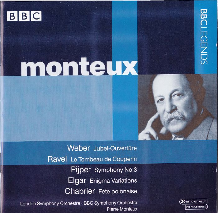 BBC Legends BBCL 4172. Monteux: Weber - Jubel-Ouverture, Ravel - Le Tombeau de Couperin, Pijper - Symphony no.3, Elgar - Enigma Variations, Chabrier - Fete polonaise (APE)