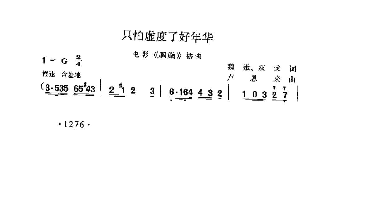 名称:只怕虚度了好年华 电影 胭脂 插曲 魏娥 双戈词 卢恩来曲