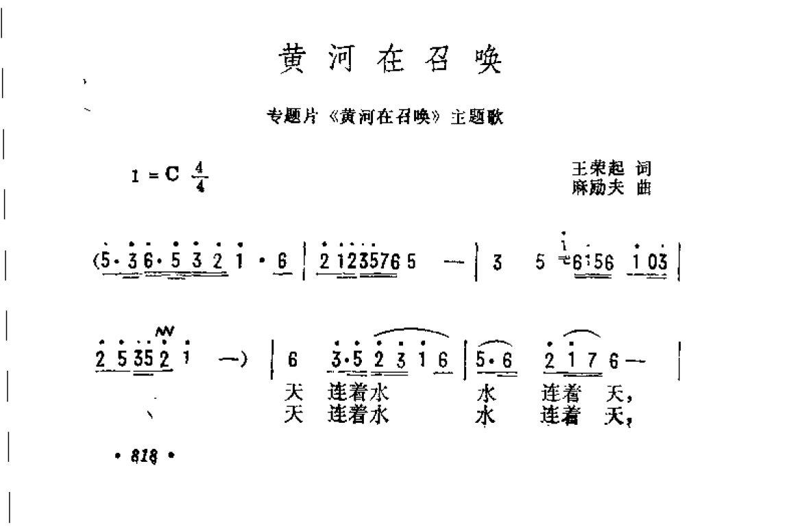 黄河在召唤(专题片《黄河在召唤》主题歌)王荣起词 麻励夫曲