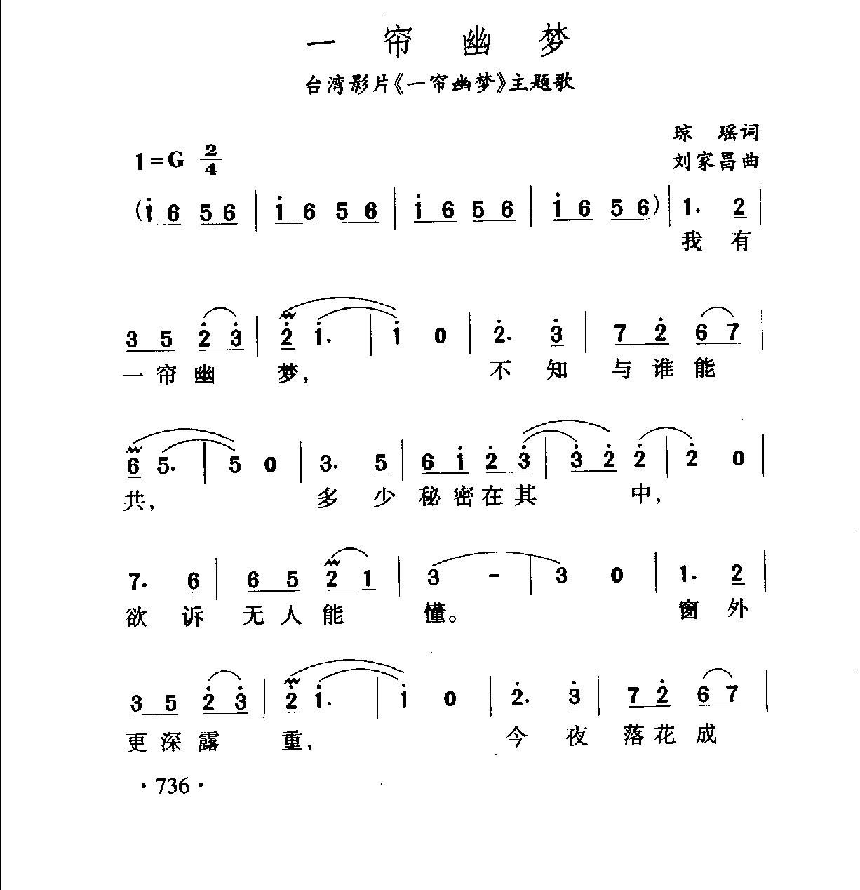 一帘幽梦(台湾影片《帘幽梦》主题歌)琼瑶词 刘家昌曲
