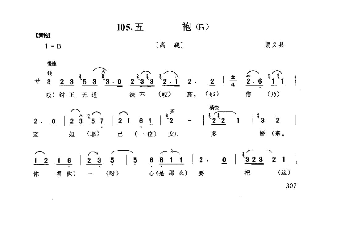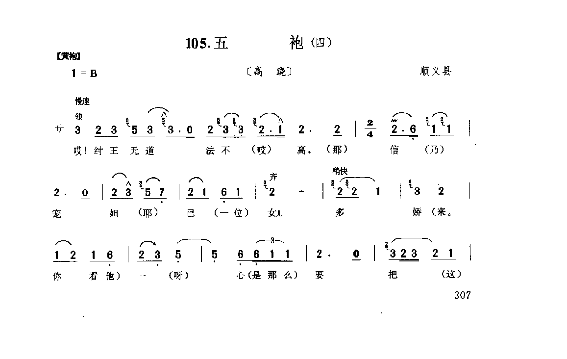 花会歌:五袍(四) 顺义县(北京民间歌曲简谱)