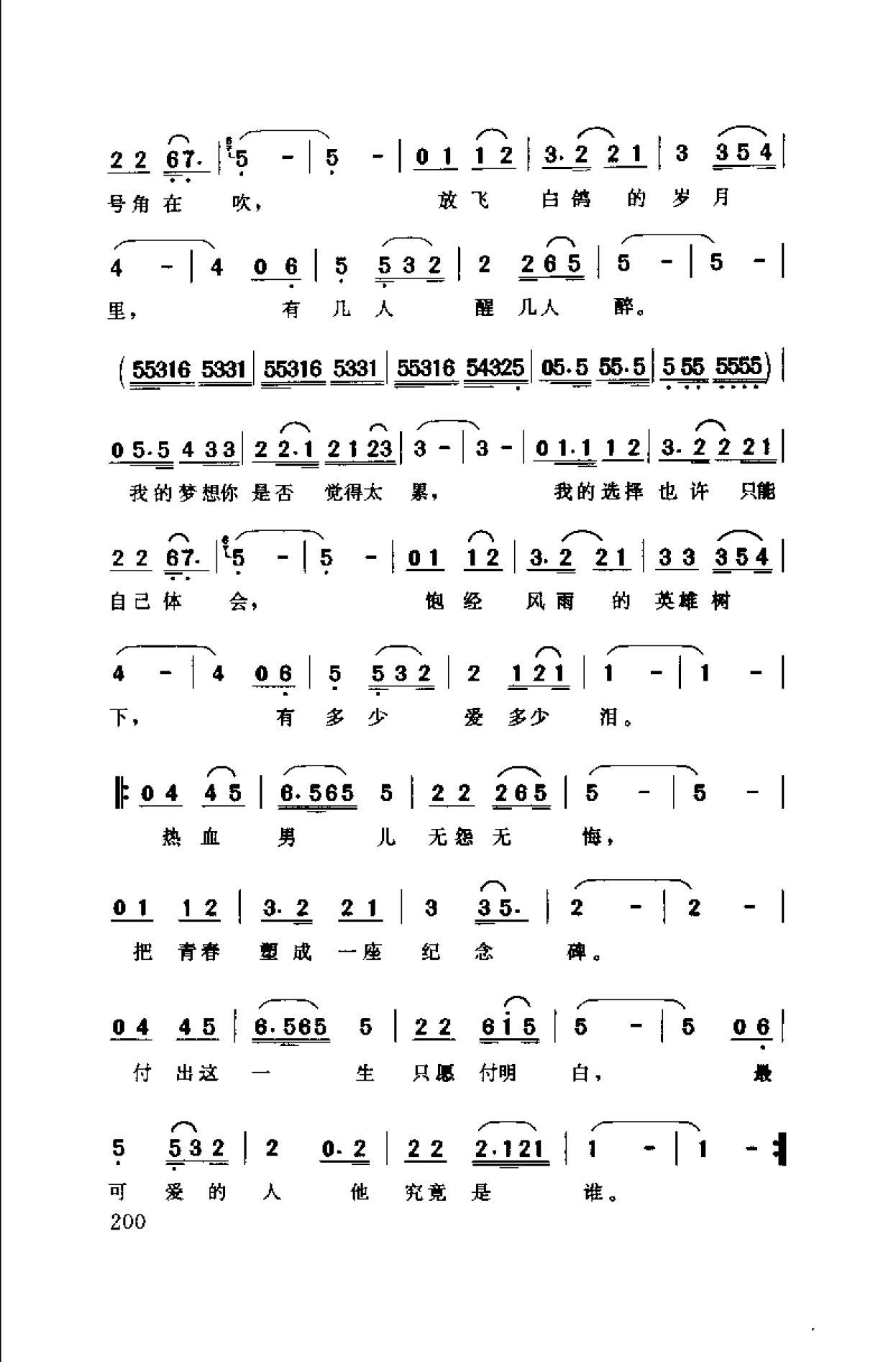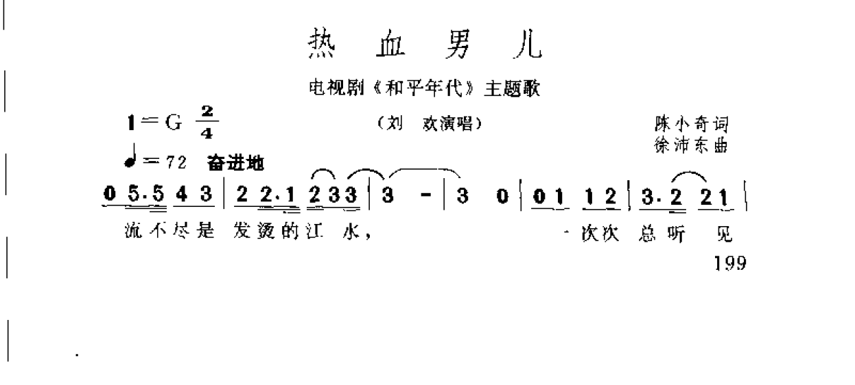简谱:热血男儿 电视剧《和平年代》主题歌·1997陈小奇词 徐沛东曲(刘欢演唱)