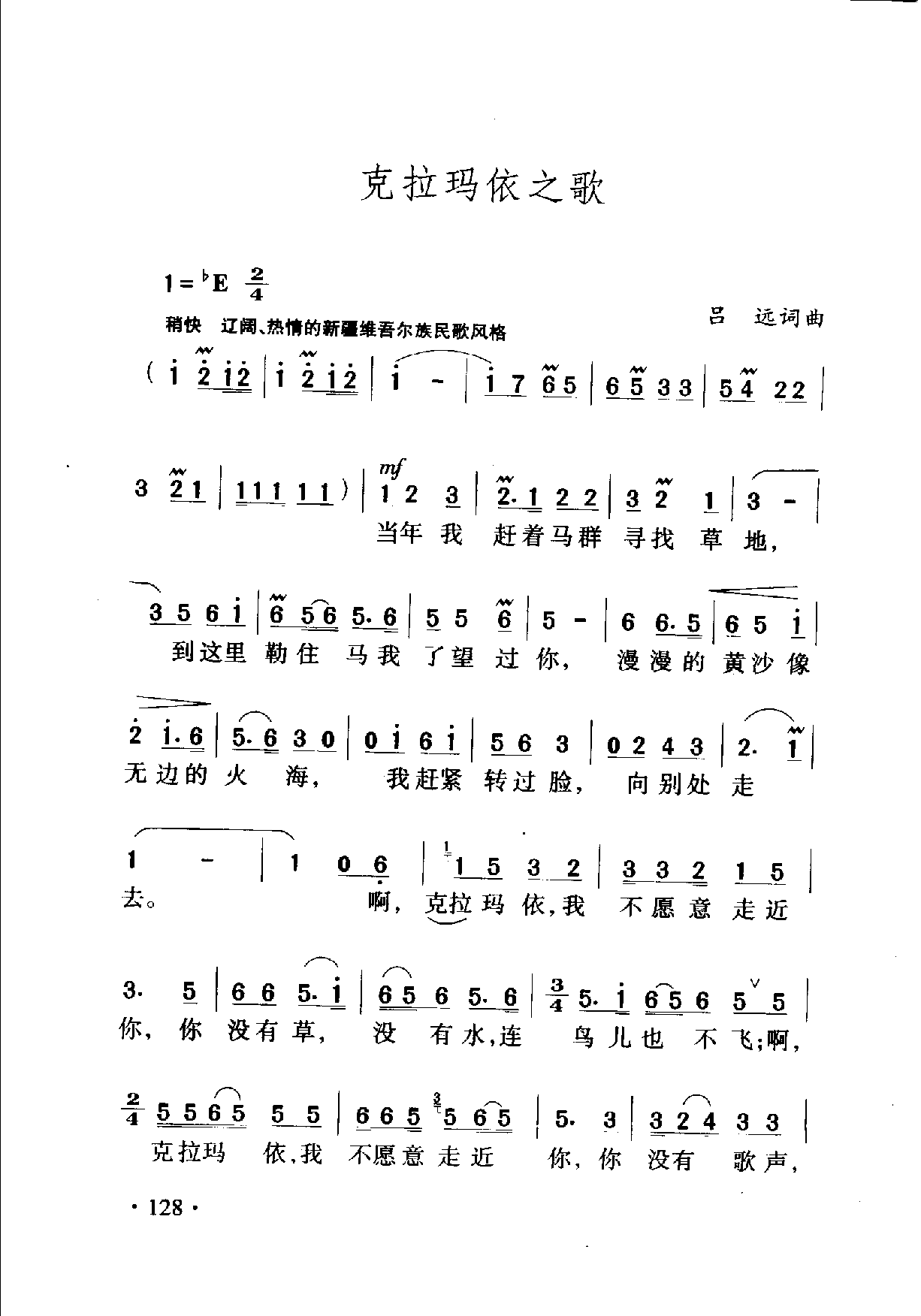 克拉玛依之歌 吕远词曲