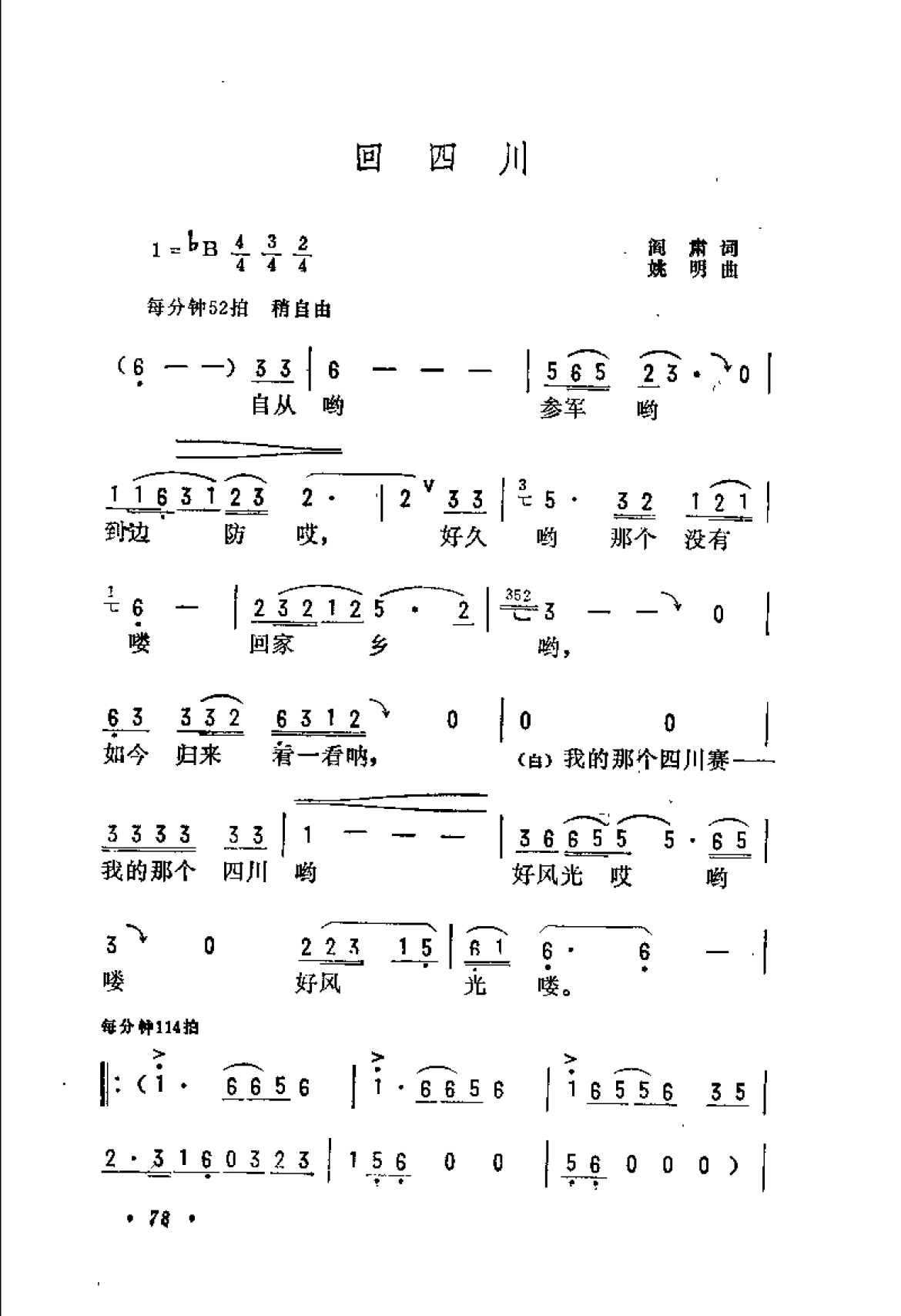 抒情歌曲简谱:回四川 阎肃词 姚明曲