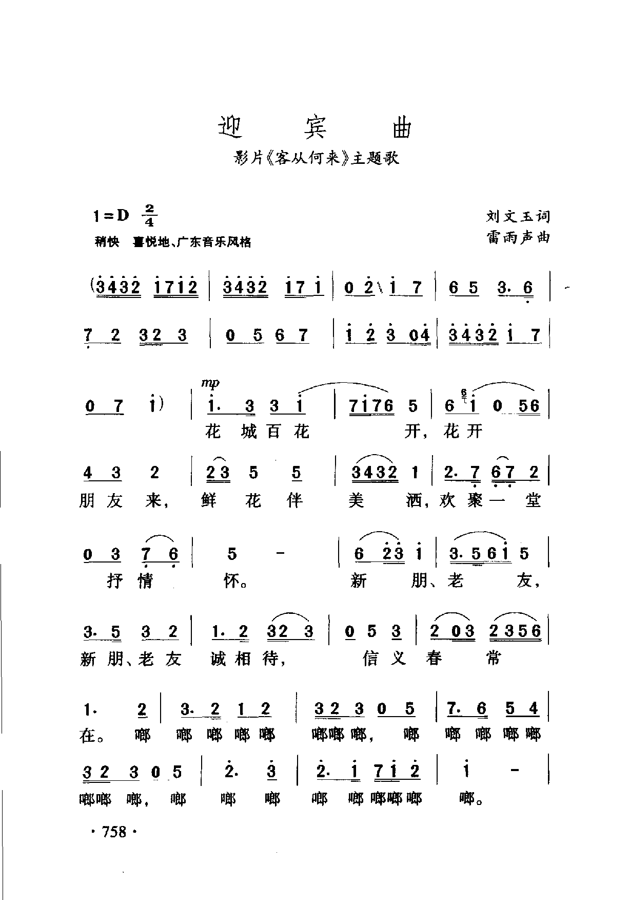 迎宾曲(影片《客从何来》主题歌)刘文玉词 雷雨声曲