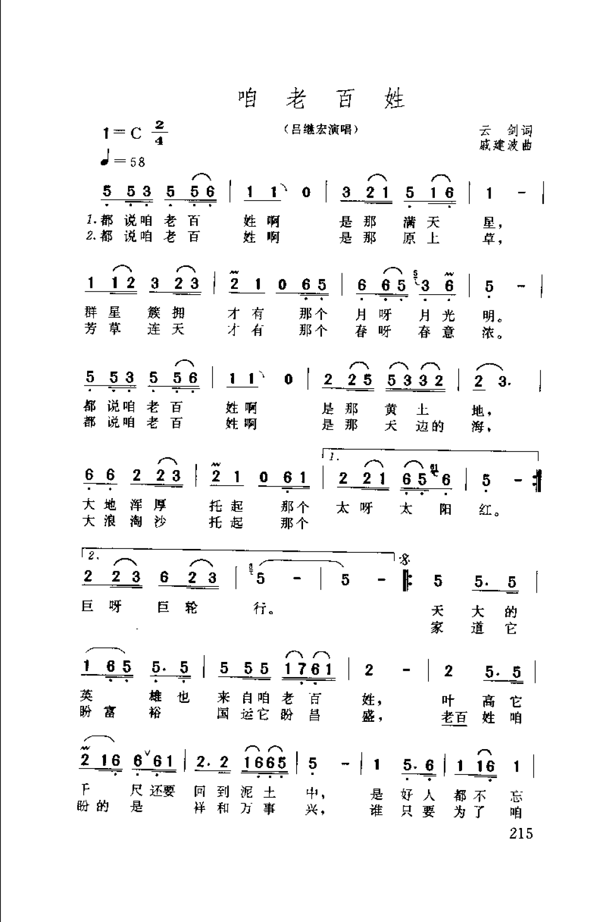 简谱:咱老百姓·1999云剑词 戚建波曲(吕继宏演唱)