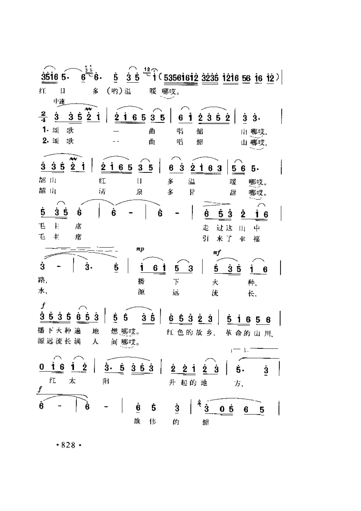 名称:颂歌一曲唱韶山 翟琮词 曹俊山曲国家:中国分类:曲谱子类:歌谱乐谱类型:简谱/五线谱文件格式:jpg