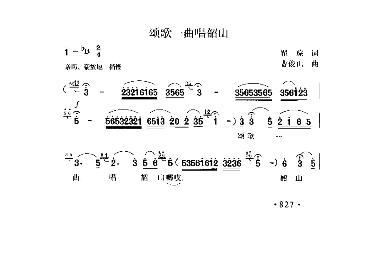 名称:颂歌一曲唱韶山 翟琮词 曹俊山曲