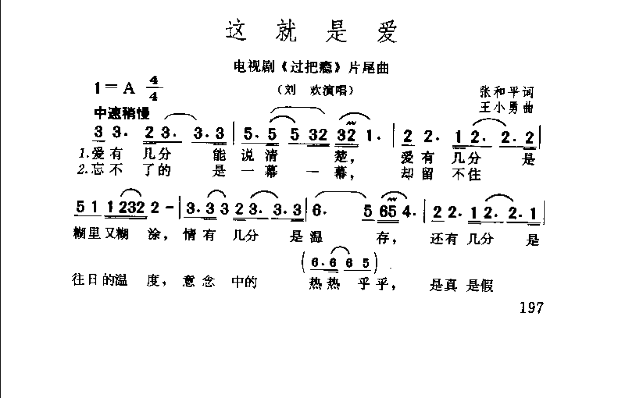 简谱:这就是爱 电视剧《过把瘾》片尾曲·1994张和平词 王小勇曲(刘欢演唱)